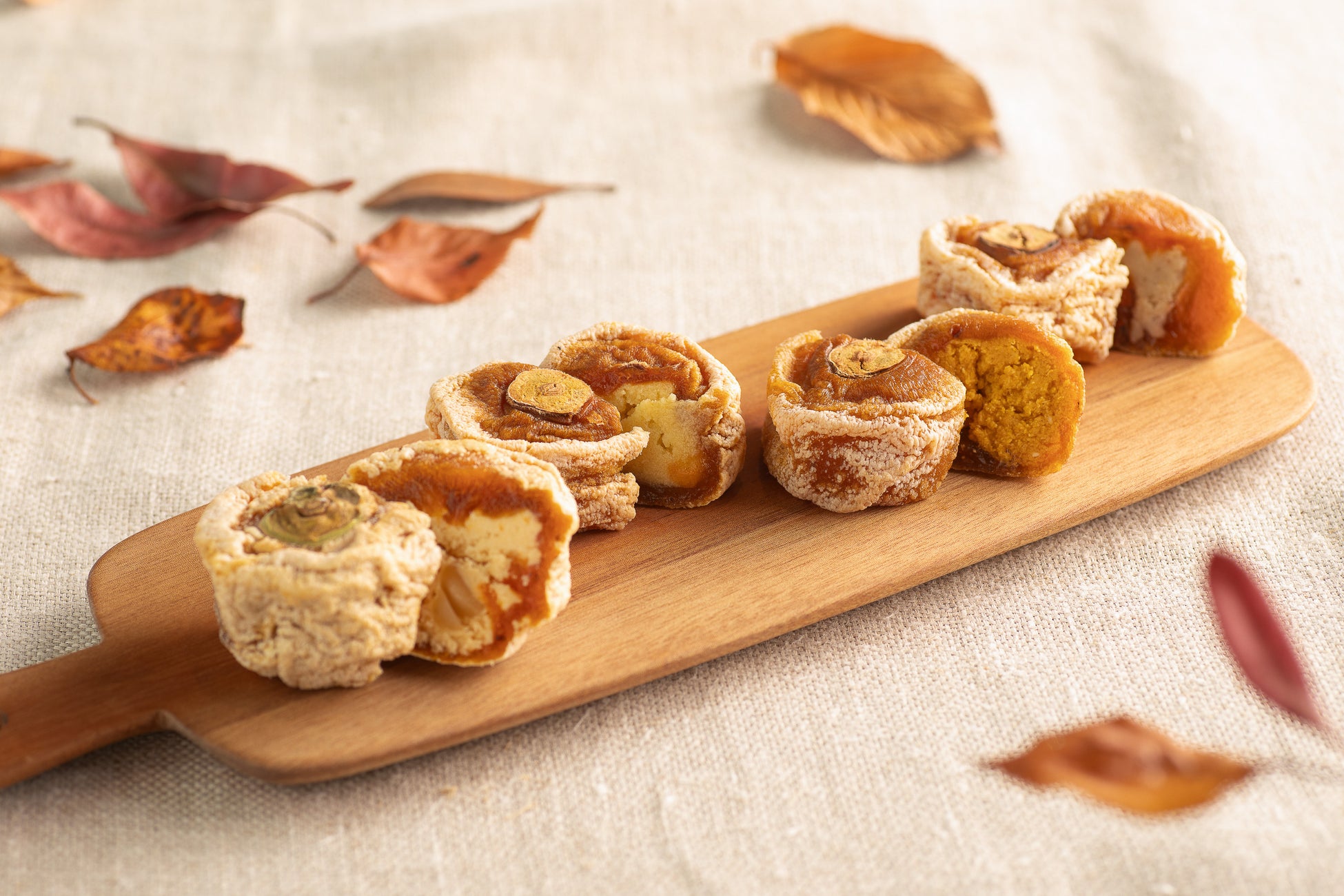 奈良・吉野の標高400mの自社農園で育てられた柿を丁寧に乾燥して仕上げた、中がトロリとした食感のあんぽ柿。季節限定フレーバーとして、キャラメルチーズケーキ、和栗、蜜いも、かぼちゃが新登場。それぞれの食感とバターのコクをお楽しみいただけます。