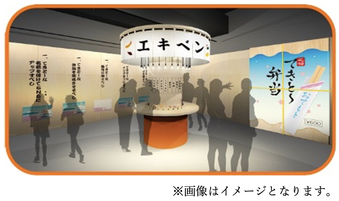 ここでは、鉄道の魅力の一つ「駅弁」をモチーフにした「てきと〜駅弁作り」を楽しめます。エキベン・タウンでは、本物の駅弁同様に様々な弁当箱から選んで、約28種もの具材のスタンプを押すことで、自分だけの「てきと〜駅弁」を作ることができます。