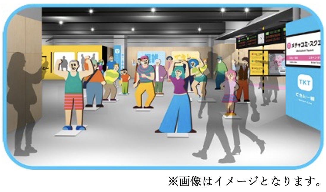 本物さながらにデザインされた券売機でチケットを購入し改札を通るとそこには、“てきと〜”を満喫できる約1,000m²もの敷地内が広がっています。来場者は、全⻑約42.5mにもなる「てきと〜線」というぐにゃぐにゃの車両に乗り、「てきと〜中央駅」、「エキベン・タウン駅」、「メチャコミ・スクエア駅」、「てつど〜ぶつパーク駅」、「ゲーム・ステーション駅」などの各ポイントで下車しながら、様々な体験コンテンツを楽しんで頂けます。
