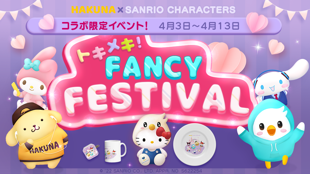 4月3日よりHAKUNA Liveにて『サンリオキャラクターズ』とのコラボ期間に行われる最後のイベント『トキメキ!Fancy Festival』がスタートします。