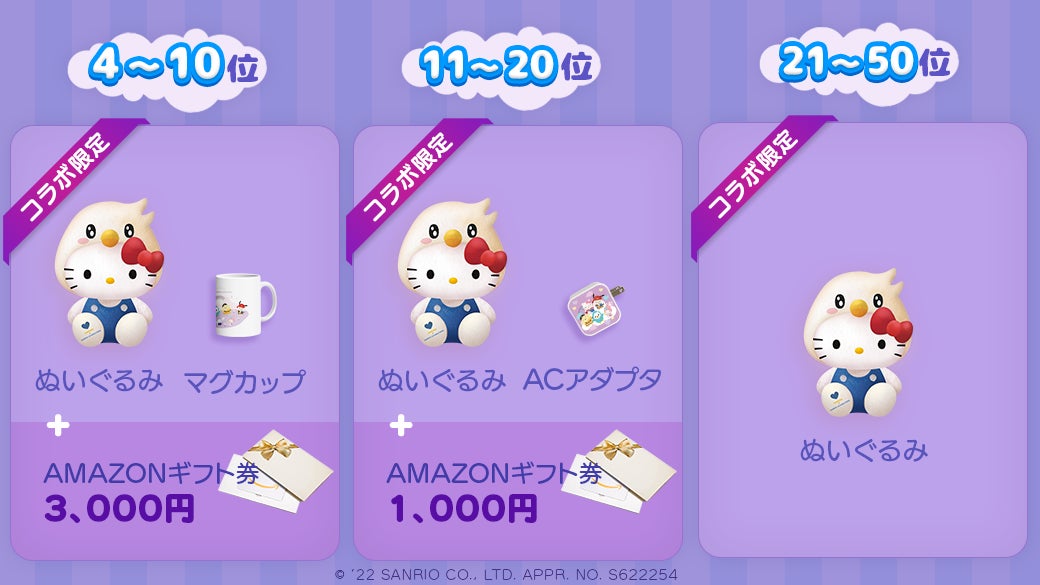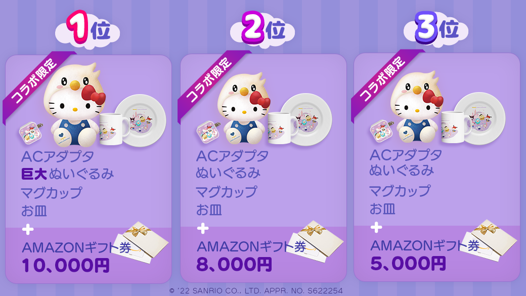 イベント期間内に『サンリオキャラクターズ』コラボ限定ギフトの全てを対象に、コラボ限定ギフトを多くもらったクナ民上位50名にコラボ限定オリジナルグッズをプレゼント!