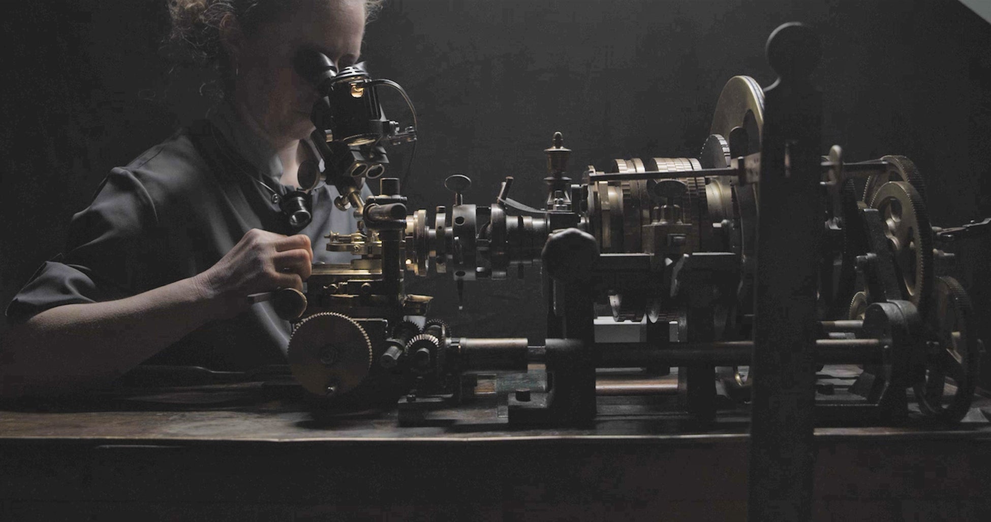 約100年前に作られた手動旋盤を使用することで、大胆かつ緻密な彫刻を小さな文字盤上で表現することができます。今回も同じ職人が1つずつ丁寧に文字盤を製造しました。