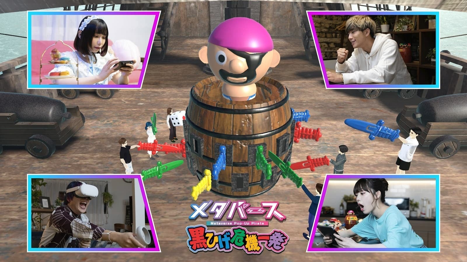 9月15日(木)にcluster内にオープンした仮想空間で玩具を遊ぶ新ワールド『メタバース 黒ひげ危機一発』への特別な入り口が、バーチャルハロウィーン開催期間限定で「バーチャル渋谷」に登場します。『メタバース 黒ひげ危機一発』の空間にもかぼちゃなどが飾られ、海賊たちが集う船着場エリアはハロウィーンの雰囲気に様変わり。ハロウィーンのワクワクに加えて、ハラハラドキドキ感覚の”黒ひげアソビ”をお楽しみください。