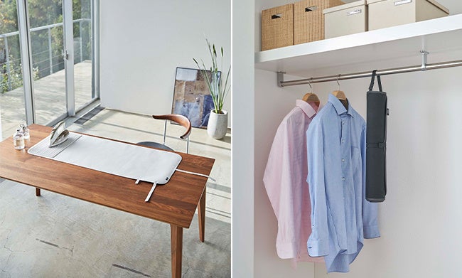 冷蔵庫の中に倒した状態で置くことができる冷水筒や、アイロン置台が付いたくるくるアイロンマットなど新商品発売中です。