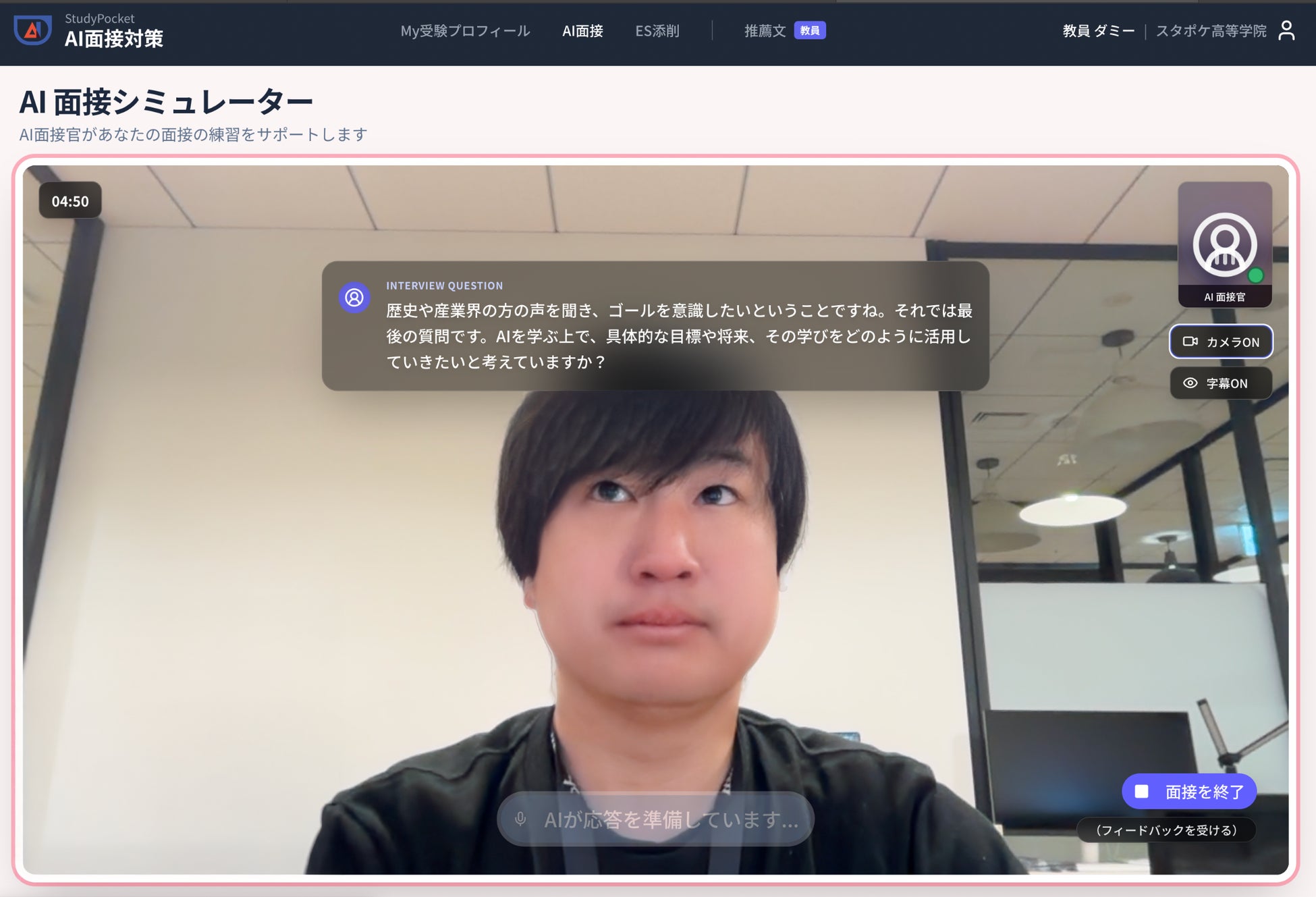 スタディポケット株式会社(本社:東京都千代田区、代表取締役:山地瞭/鶴田浩之、以下「スタディポケット」)は、学校向け生成AIサービス「スタディポケット for STUDENT、for TEACHER」において、AIと音声・ビデオで対話しながら模擬面接ができる新機能「スタディポケット AI面接対策」の体験版を、本日2026年1月15日より順次、提供開始いたします。また、合わせて特設サイト ( https://career.studypocket.ai ) を公開いたしました。