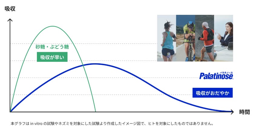 その特性から、パラチノース®は持続エネルギー源といわれ、長時間の運動や勉強のパフォーマンスをサポートします。