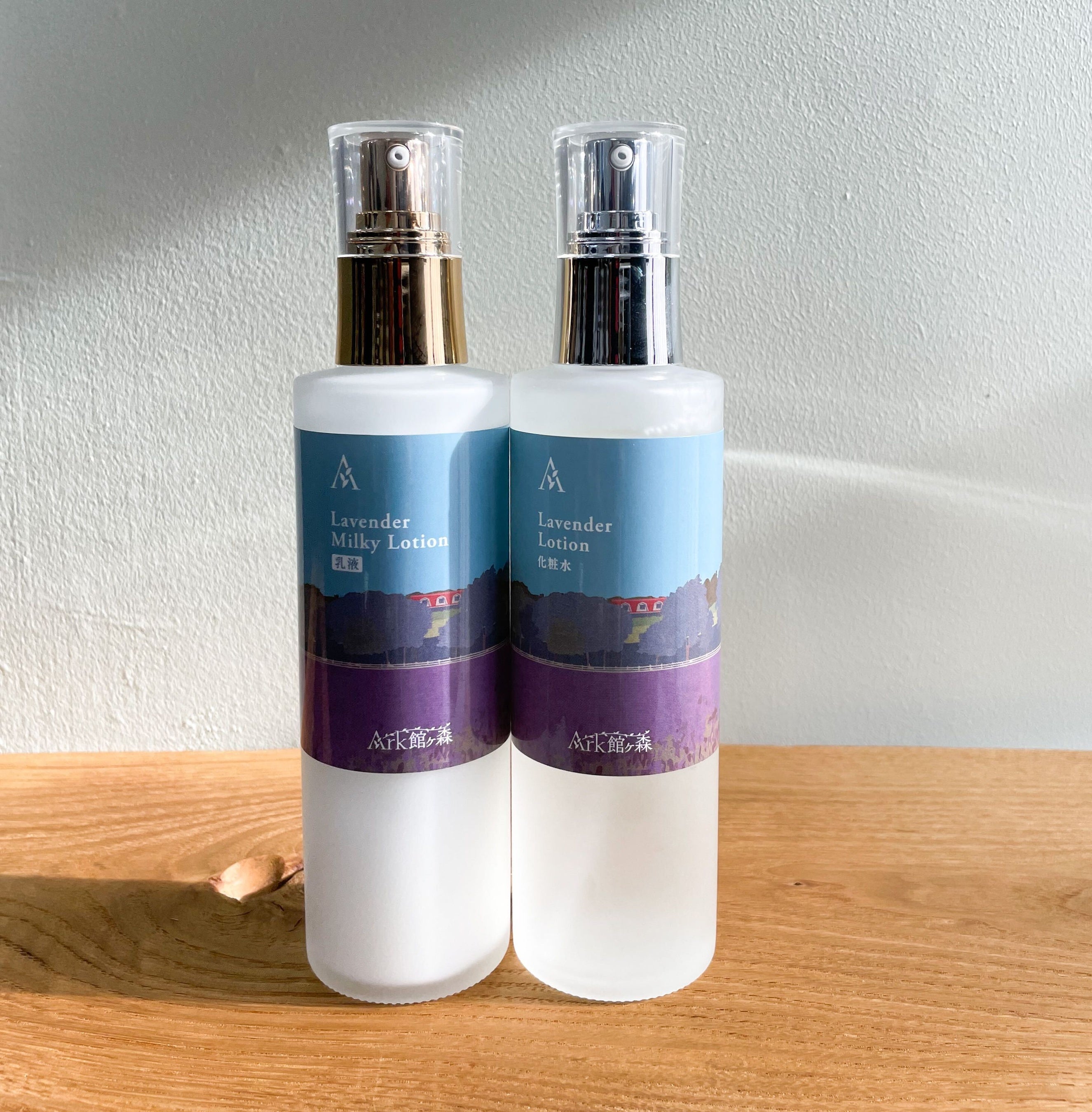 化粧水・乳液には、アーク牧場で栽培されたラベンダーから抽出したラベンダーエキスとハチミツを保湿成分として使用。天然由来成分95%以上配合でお肌にすばやく浸透し、うるおいを与える化粧水と、肌表面のコンディションを整えるなめらかな乳液に仕上げています。