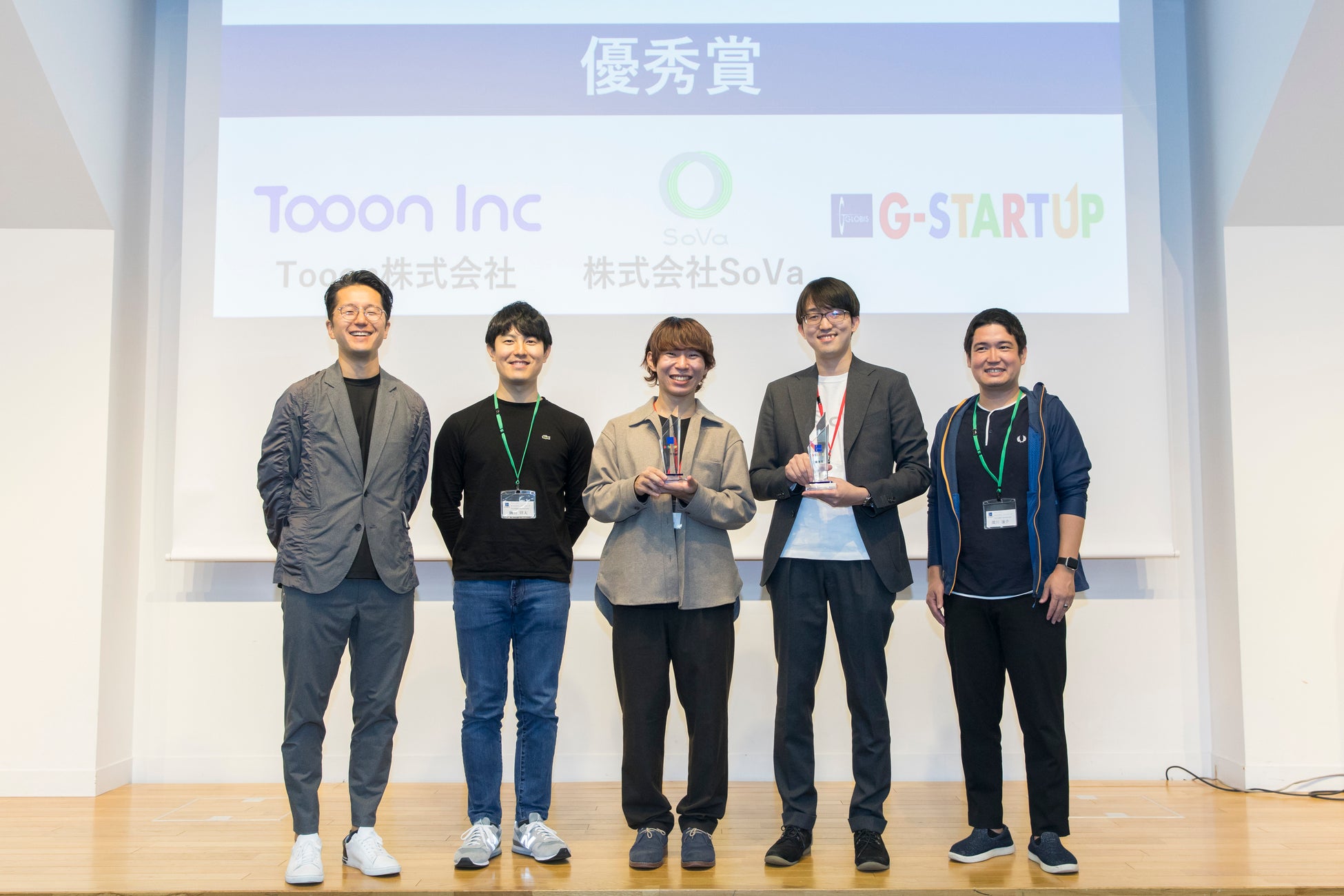 G-STARTUP 5th BatchのDemo Dayは、集まった国内有数のベンチャー・キャピタル、エンジェル投資家ら70名以上の出資検討者を前に、採択企業11社が事業のプレゼンテーションを実施。審査の結果、BoostIO株式会社が最優秀賞、株式会社SoVa、Tooon株式会社の2社が優秀賞に決定しました。加えて、プログラム期間中に最も成長した企業を表彰するベストグロース賞はFlora株式会社に、デモデイ参加者の投票によるオーディエンス賞は、BoostIO株式会社、株式会社SoVaの2社に決定しました。最優秀賞を獲得したBoostIO株式会社は、IncubateTrack採択企業として参加し、Incubate Demo dayを経て15社から1社に授与されるDemo Dayでの特別ピッチ権を獲得。Demo DayではMain trackのメンバーを制して、最優秀賞に輝きました。