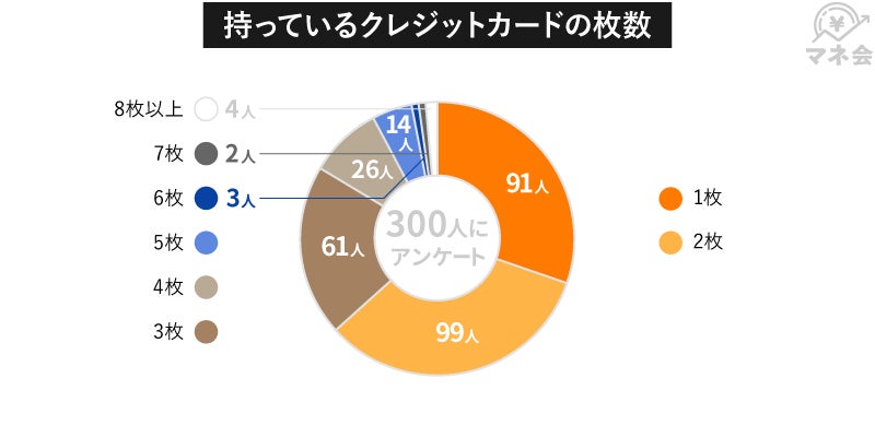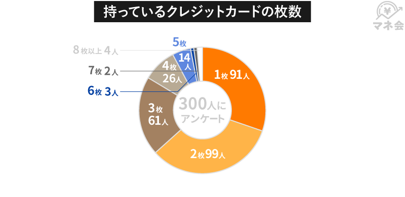 マネ会では、メインカードを含み、何枚クレジットカードを保有しているかも調査しました。