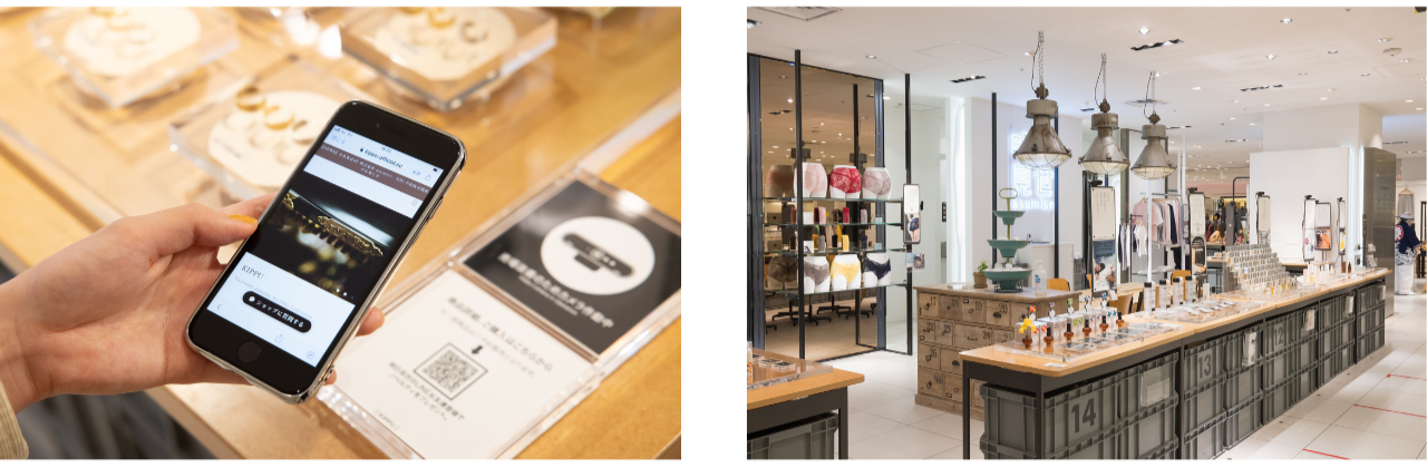2021年にオープンした大丸松坂屋百貨店が運営する「明日見世-asumise-」は、想いあふれるモノとストーリーに出会い・試せる“みらいのためのショールーム”です。「売らない店舗」といった愛称で知られ、店頭販売は行っていません。商品の見本を展示し、実際に商品を手に取ってもらう。購入したい場合は「QRコードを読み込んでECサイトから購入」という今までにない新体験型ショールームです。