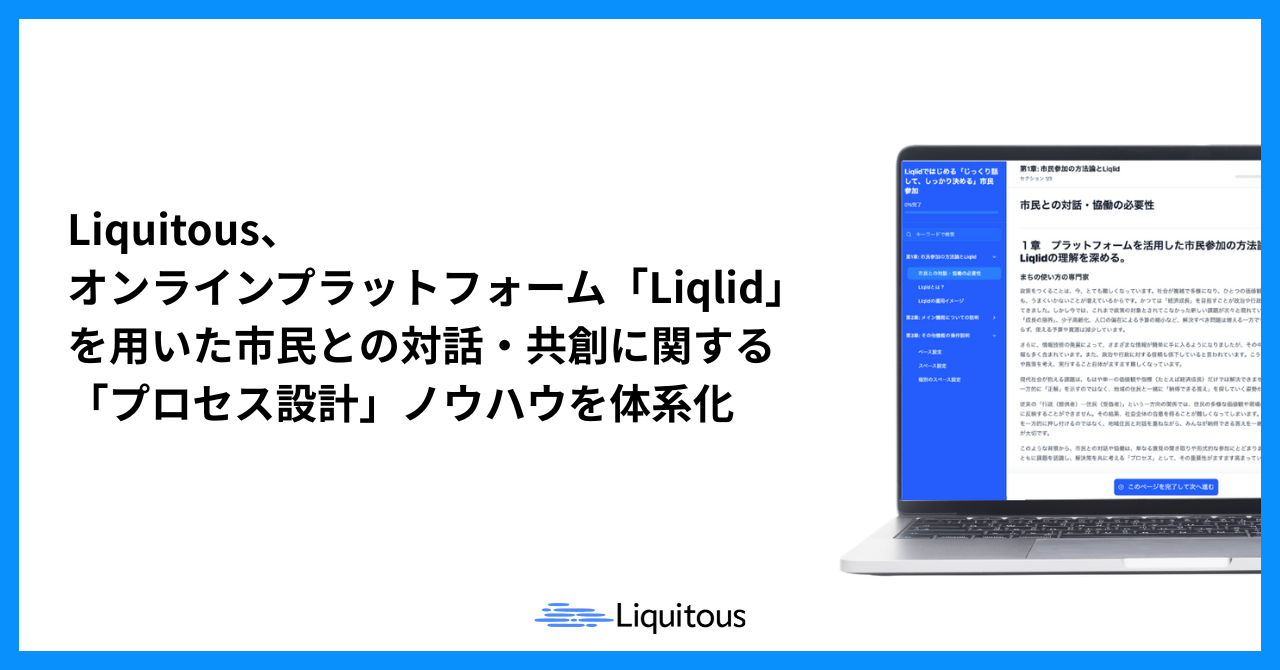 Liquitous、オンラインプラットフォーム「Liqlid」を用いた市民との対話・共創に関する「プロセス設計」ノウハウを体系化