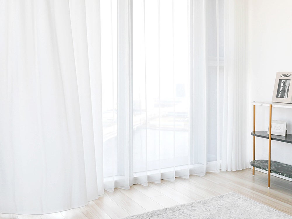 ミリューの魅力は美しさだけではありません。厚めの生地だからこそ叶えられる、抜群の機能性も持ち合わせた理想の1枚です。UVカット機能に加え、外からの熱を遮る遮熱効果と冷暖房の空気を逃がさない保温効果、さらには採光機能まで。1年中快適に暮らすために、窓辺でそっと力を貸してくれるレースカーテンです。