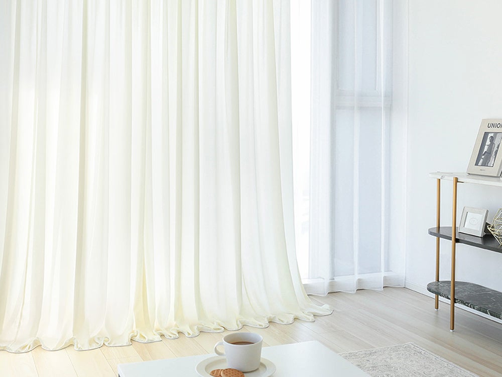 今までにない、極上の「ふわとろ」タッチに心奪われるレースカーテン「ミリュー」。通常のレースカーテンとひと味違うのは、 ドレープカーテンとしてもレースカーテンとしても使える、新しいかたちのテキスタイルということ。ドレープカーテンとして使えば、柔らかな陽ざしが差し込む開放感溢れる空間に。レースカーテンとして使えば、遮像効果抜群の安心できるリビングに。そんな新感覚のレースカーテン「ミリュー」は、特別な生地感だけでなく、抜群の機能性も持ち合わせています。上質なひと時を過ごすためのリュクスな空間にふさわしい、魅力溢れるテキスタイルです。