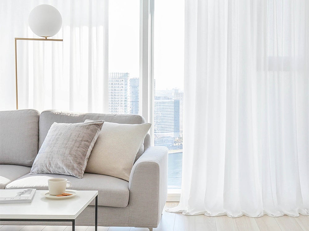 POINT2.レースカーテンの上に「ミリュー」を重ね、開放感溢れる空間に