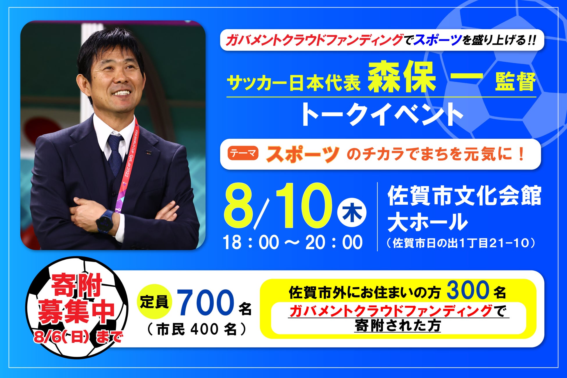 【佐賀市】ガバメントクラウドファンディング スポーツのチカラでまちを元気に!『サッカー日本代表 森保 一監督トークイベント』