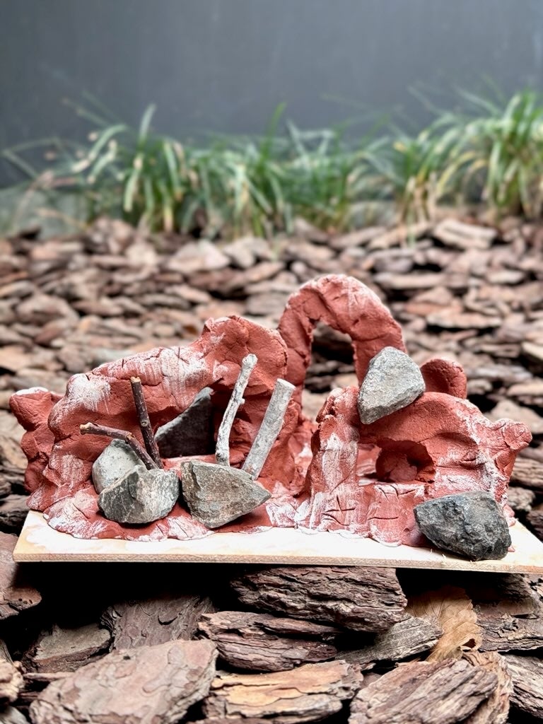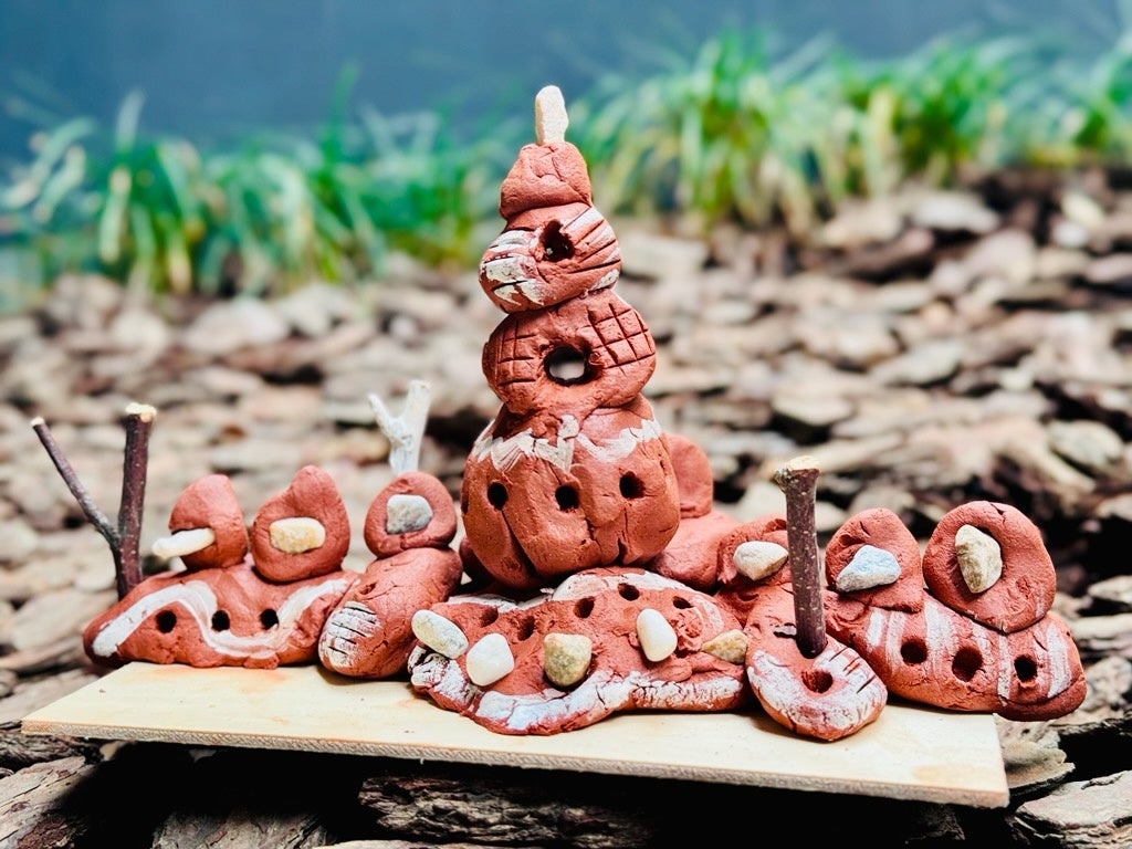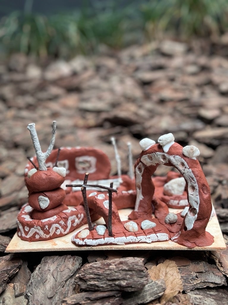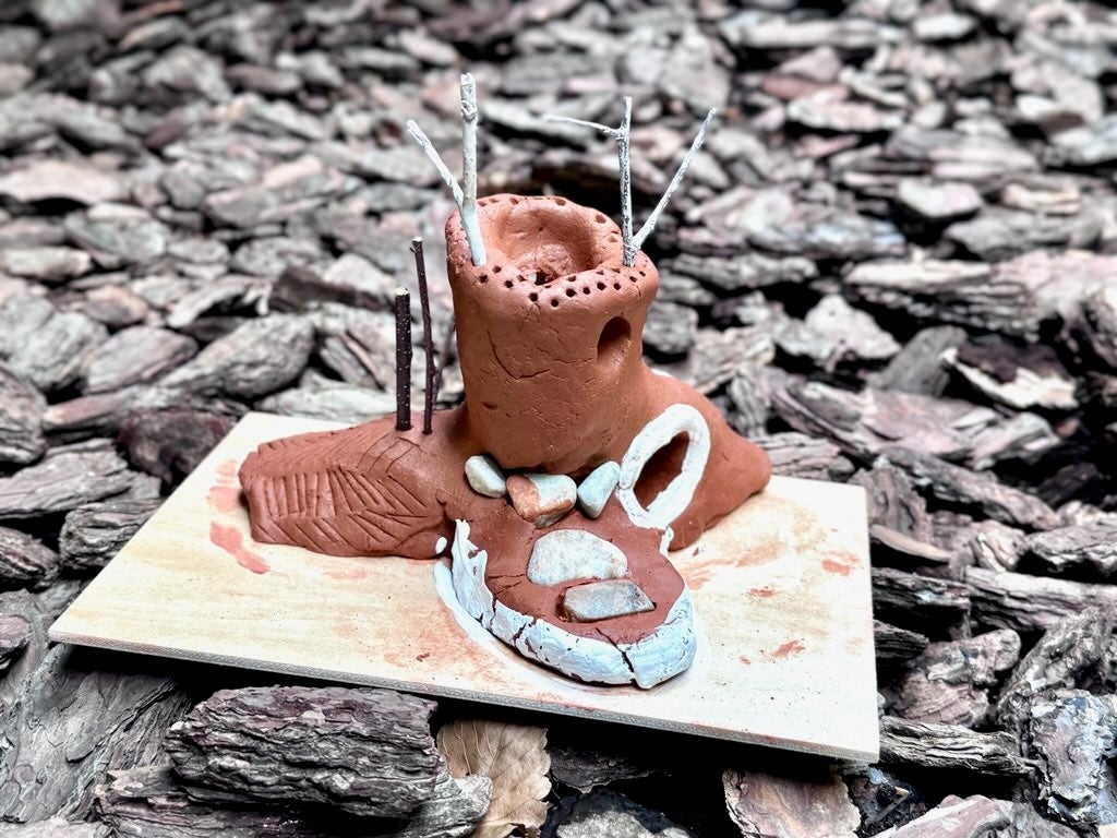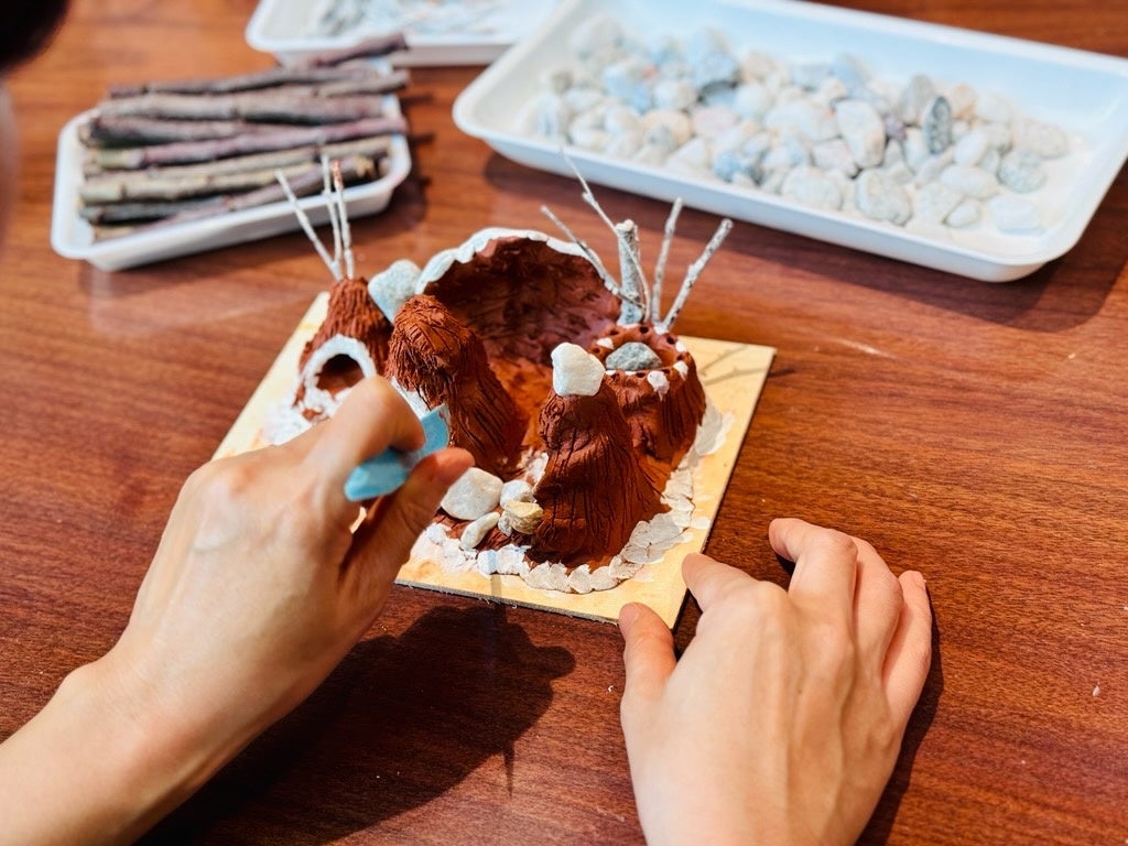 粘土で丘をつくり、石の遺跡をつくりあげた上に枝や葉っぱで年月を表現します。「いま、ここ」ではない文明を、遺跡の姿で創造し、土や石、木など様々な素材を組み合わせることで、手指の感覚を生き生きさせましょう。大人は童心にかえって粘土をこねる時間を楽しむこともでき、お子様は夏休みの自由研究としても取り組むこともできます。年齢にかかわらず、壮大な遺跡に思いをはせて、夏の思い出を作るアートセッションをお楽しみください。