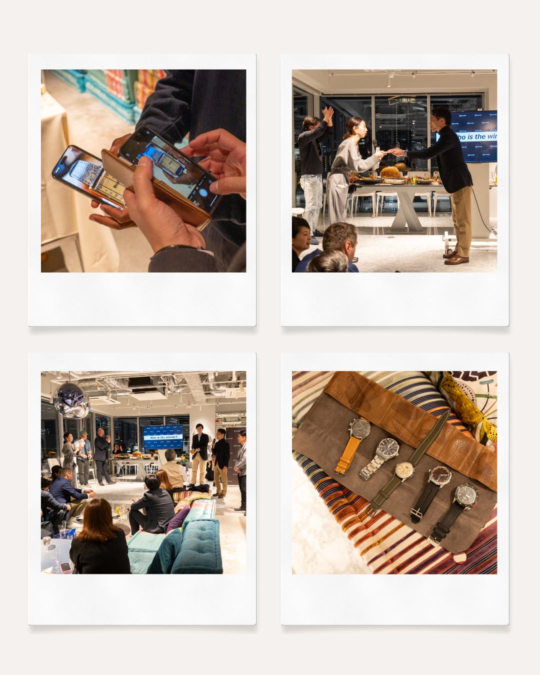 時計の知識が問われるクイズ大会も催され、数々の難問を勝ち抜いた博学の時計ファン5名が最後にじゃんけん勝負で勝者を決めると、会場の熱気は最高潮に。この日のために、東京のみならず日本各地からご参加いただいた時計愛好家の皆様と、心から楽しいひと時を過ごせたことに、スタッフ一同感激した夜でした。