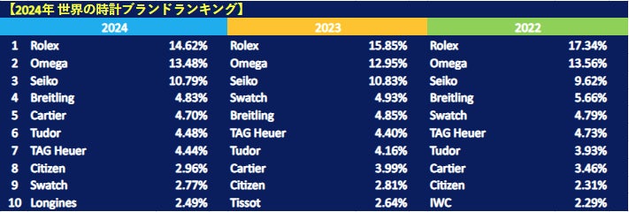 オメガとセイコーの競争が激化!依然としてロレックスが市場をけん引【2024年 世界市場データ】