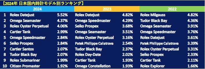 本ランキングは、2022年から2024年にかけての時計業界のトレンド、ブランド、モデル、素材、ダイヤルカラーの好みを切り取ったランキング表となっています。以下に、いくつかの注目すべきインサイトをご紹介します。