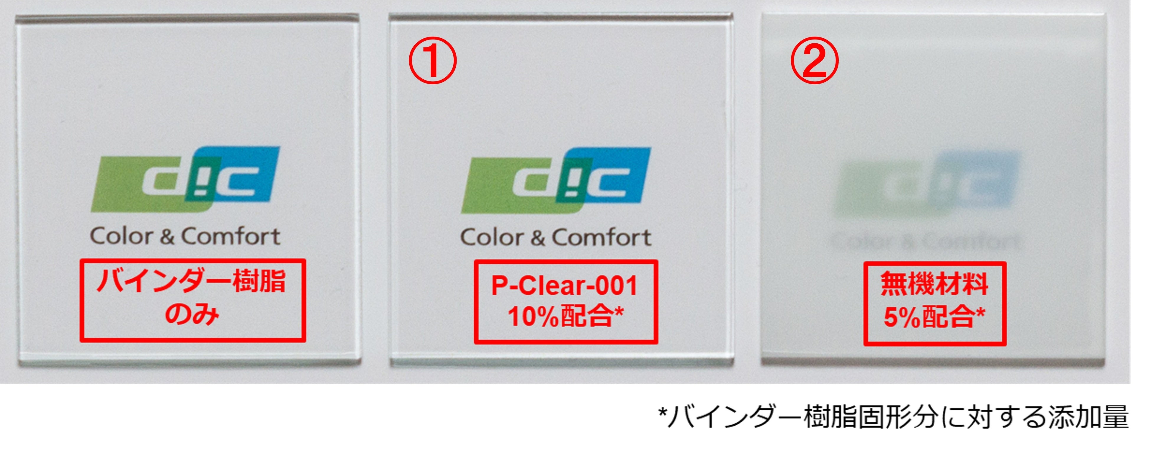 ①バインダー樹脂(当社ウレタン樹脂)に本開発品を10%配合し、透明ガラス板に乾燥膜厚60μmで塗工