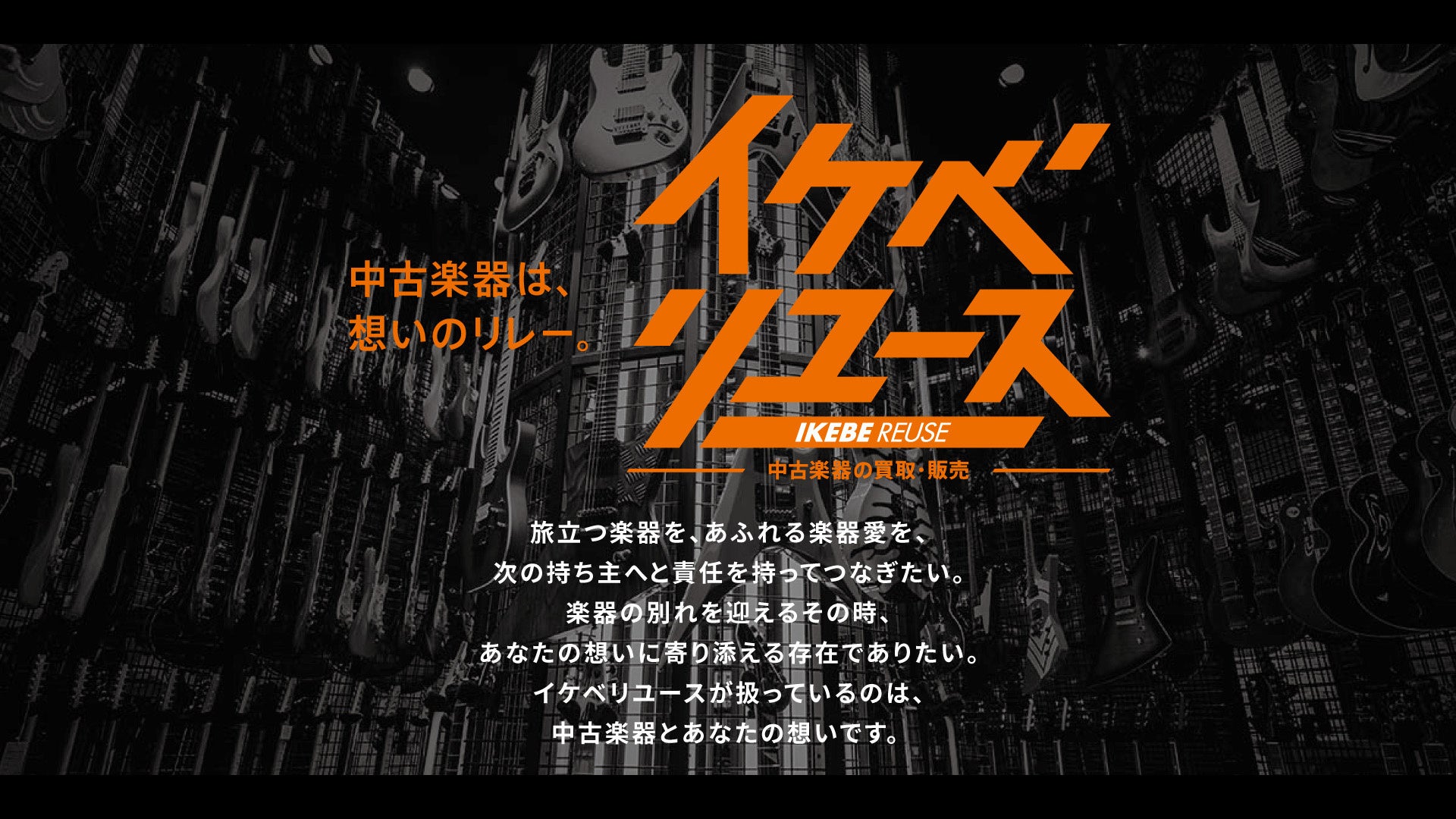 中古楽器はまざまな事情や理由により日々私たちの元にやってきます。また、お売りいただくオーナー様からは、信頼できる人や大切にしてくれる人の手に渡ってほしいというお声を多くいただきます。楽器に宿る想いや物語を大切にしたい。そう考える私たちは、長年培ってきた知識とノウハウを活かしつつ、その想いのバトンを新たなオーナー様へとしっかりつなぐことを第一に考え、2021年12月に中古楽器の買取・販売サービスを「イケベリユース」としてリブランディングし「中古楽器は、想いのリレー」をスローガンに、「お客様の楽器との別れや出会いに真摯に寄り添える存在」となることを目指してリユース楽器事業に取り組んできました。