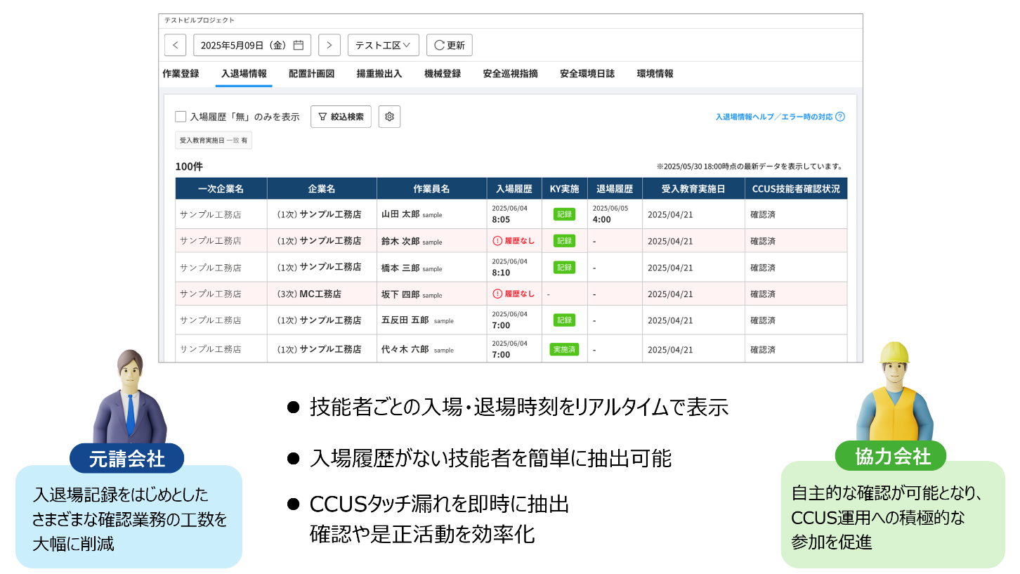 現場の施工管理サービス「ワークサイト」 技能者の入退場・KY実施・CCUS登録状況をまとめて確認できる「入退場情報機能」を提供開始
