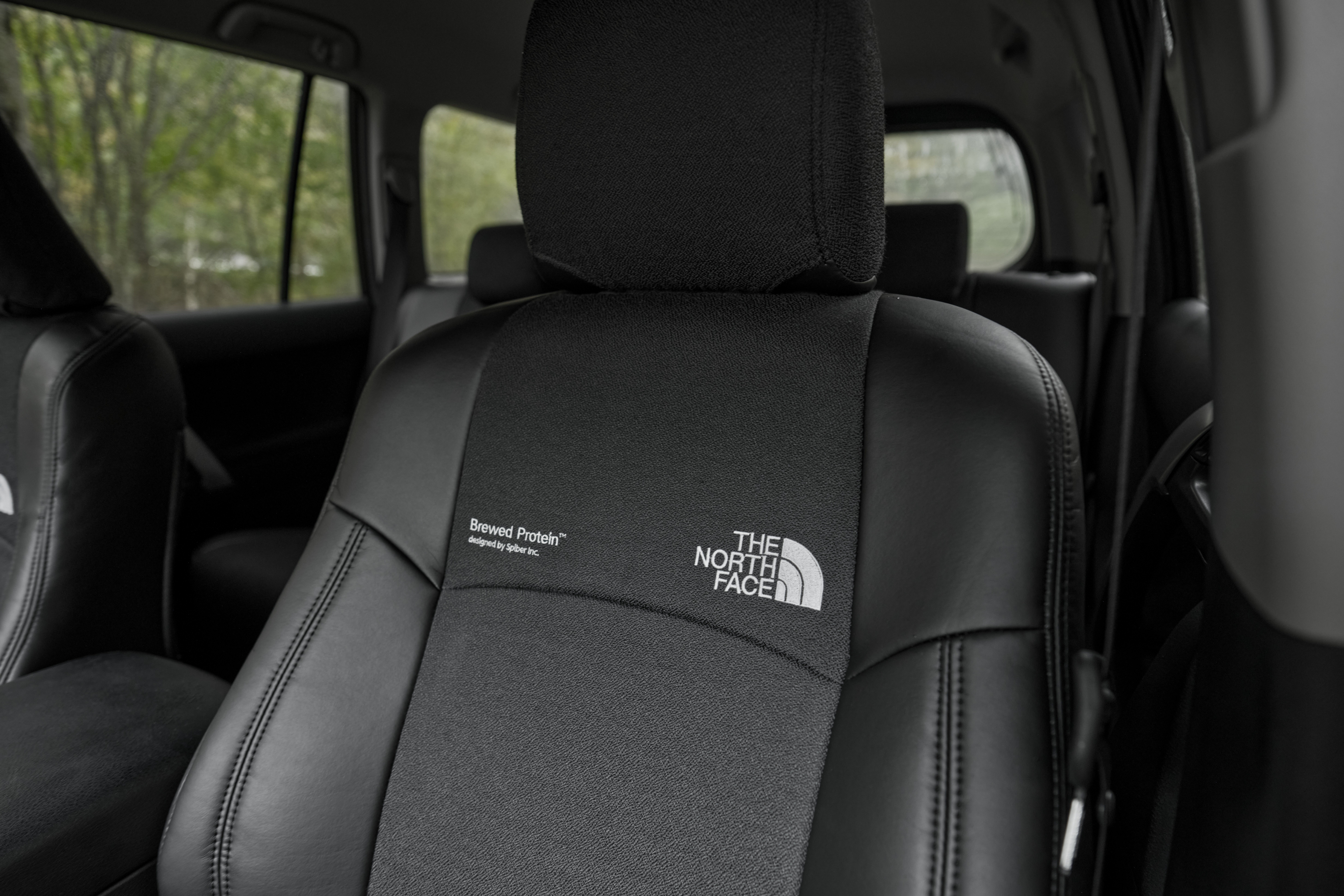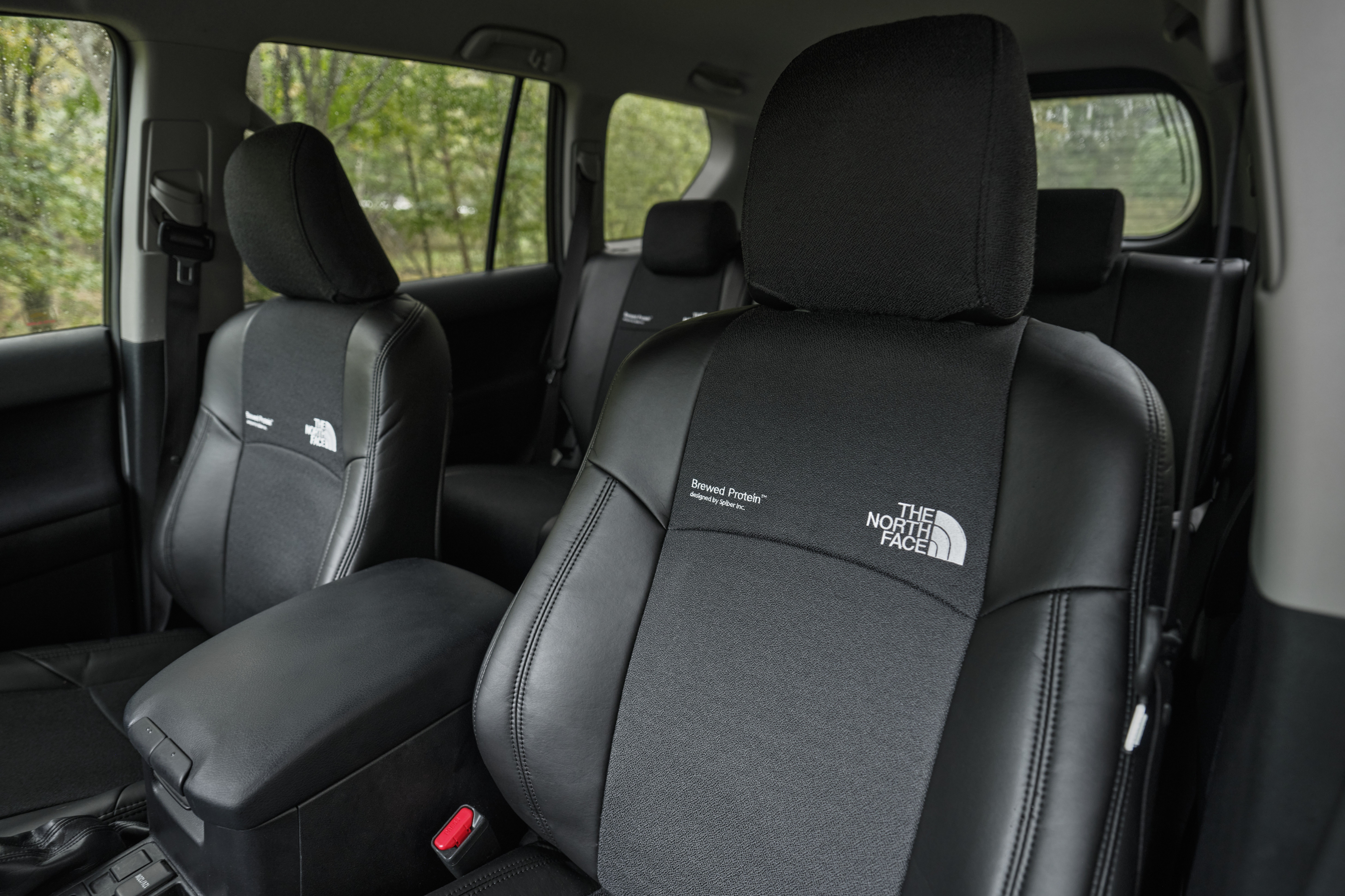 オリジナルシートカバーのデザインも、オールブラックでまとめながら、前後席シートのシートバック(背もたれ)にロゴを配置することで、不動の人気を誇るTHE NORTH FACEのアウタージャケットのようなクールな印象に。また、フロアマットには「TOYOTA」、コンソールボックスには「THE NORTH FACE」のロゴをあしらうことで、運転席周りにも特別感を演出。