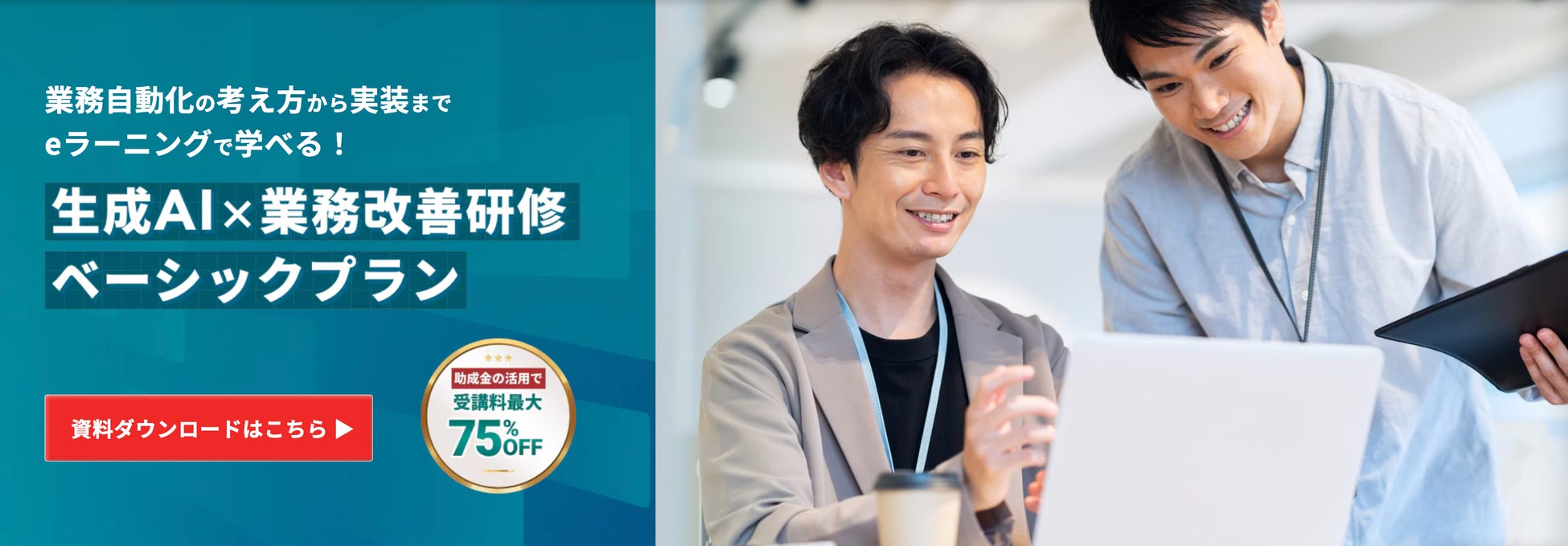 業務の棚卸し方法から生成AIを用いた業務改善の仕方をeラーニング形式で学べる研修が、厚生労働省の「人材開発支援助成金(事業展開等リスキリング支援コース)」制度に対応したプランで登場