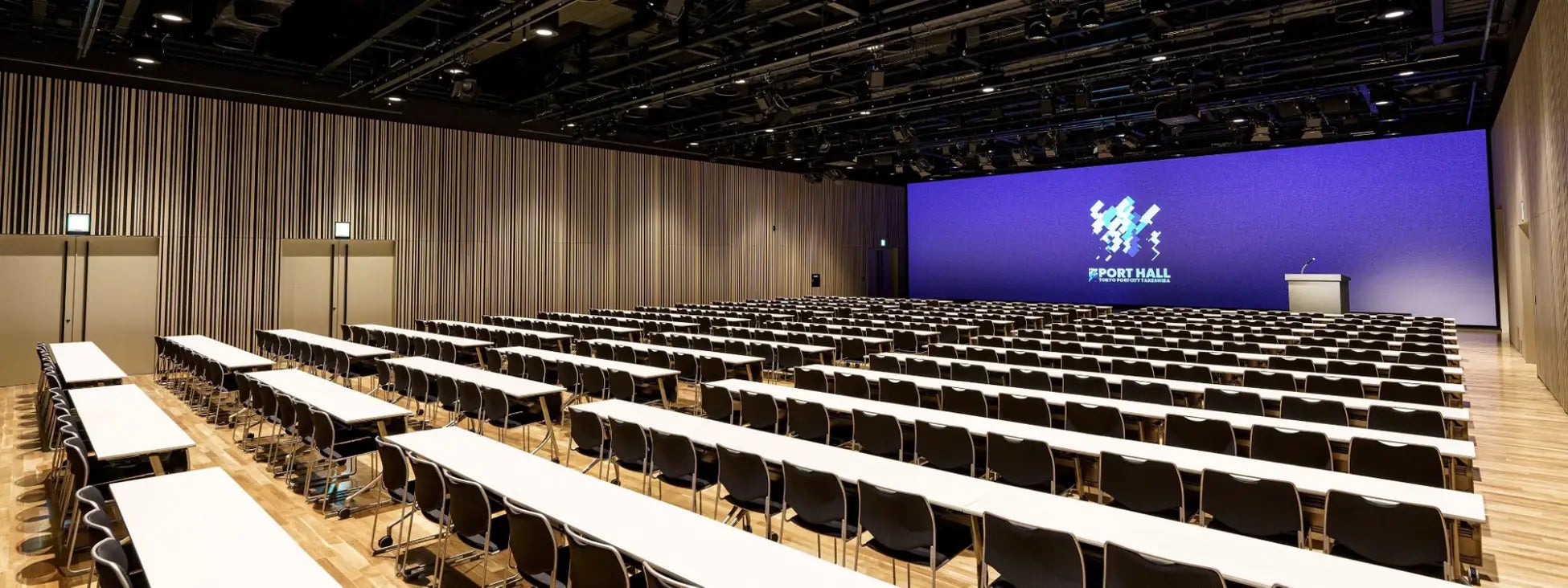 会場は都市型スマートビル「東京ポートシティ竹芝」の1階にある「ポートホール」。200社の応募者の中から厳しい選考を経て選ばれた決勝進出者が、壁一面のスクリーンで大迫力の映像演出が可能なポートホールで、プレゼンテーションを行います。