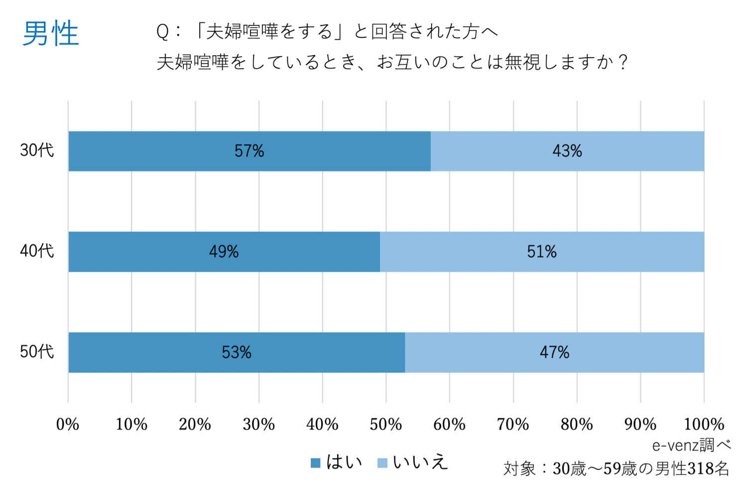 夫婦喧嘩の原因や仲直りの方法を調査すべく、今回e-venzでは30代から50代の既婚者を対象に夫婦喧嘩に関するアンケート調査を実施しました。