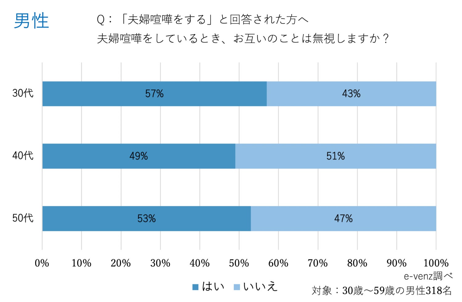婚活・恋活や街コンなど中心とする男女の出会いメディアe-venz(イベンツ)を運営するノマドマーケティング株式会社(所在地:東京都渋谷区、代表取締役:三輪賢治)では、30代,40代,50代の既婚者1,000名を対象に夫婦喧嘩についてのアンケートを実施しました。