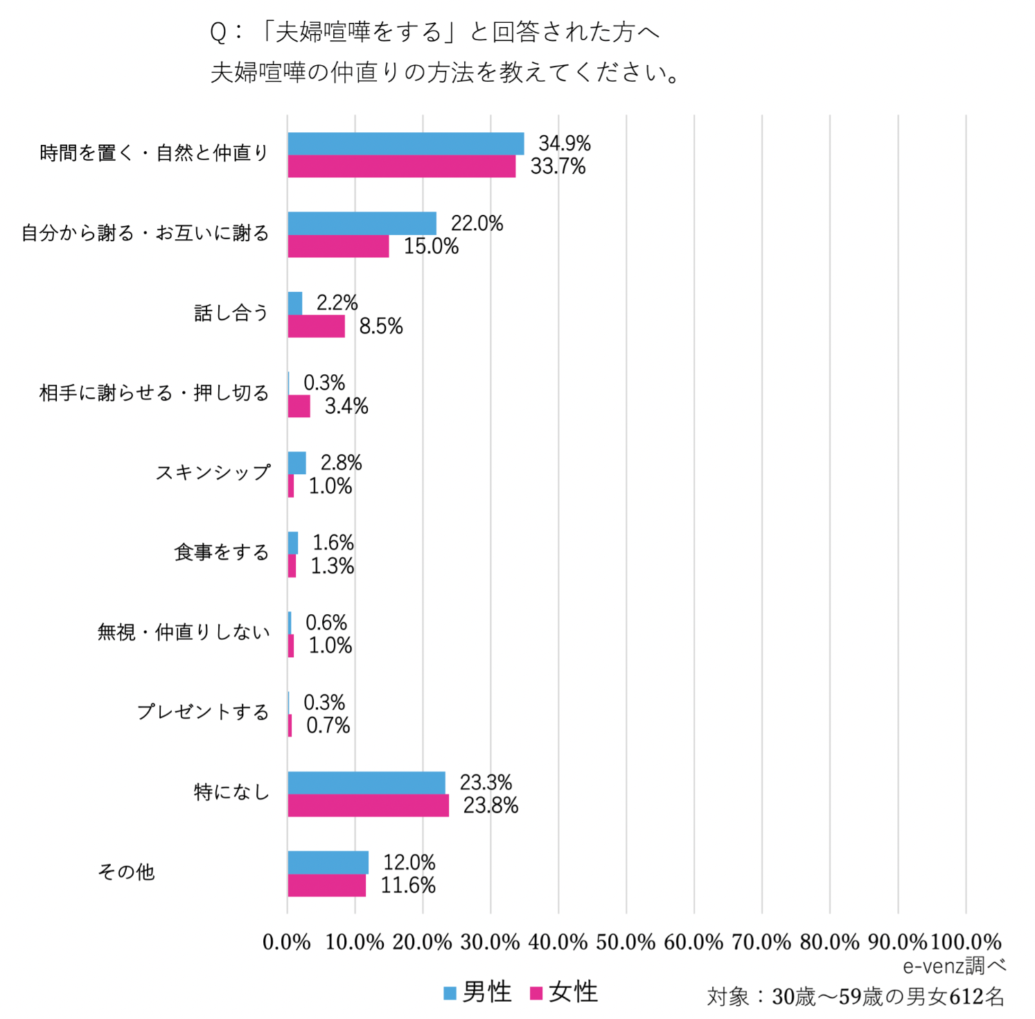 「夫婦喧嘩をする」と回答した方に、仲直りの方法について調査してみました。