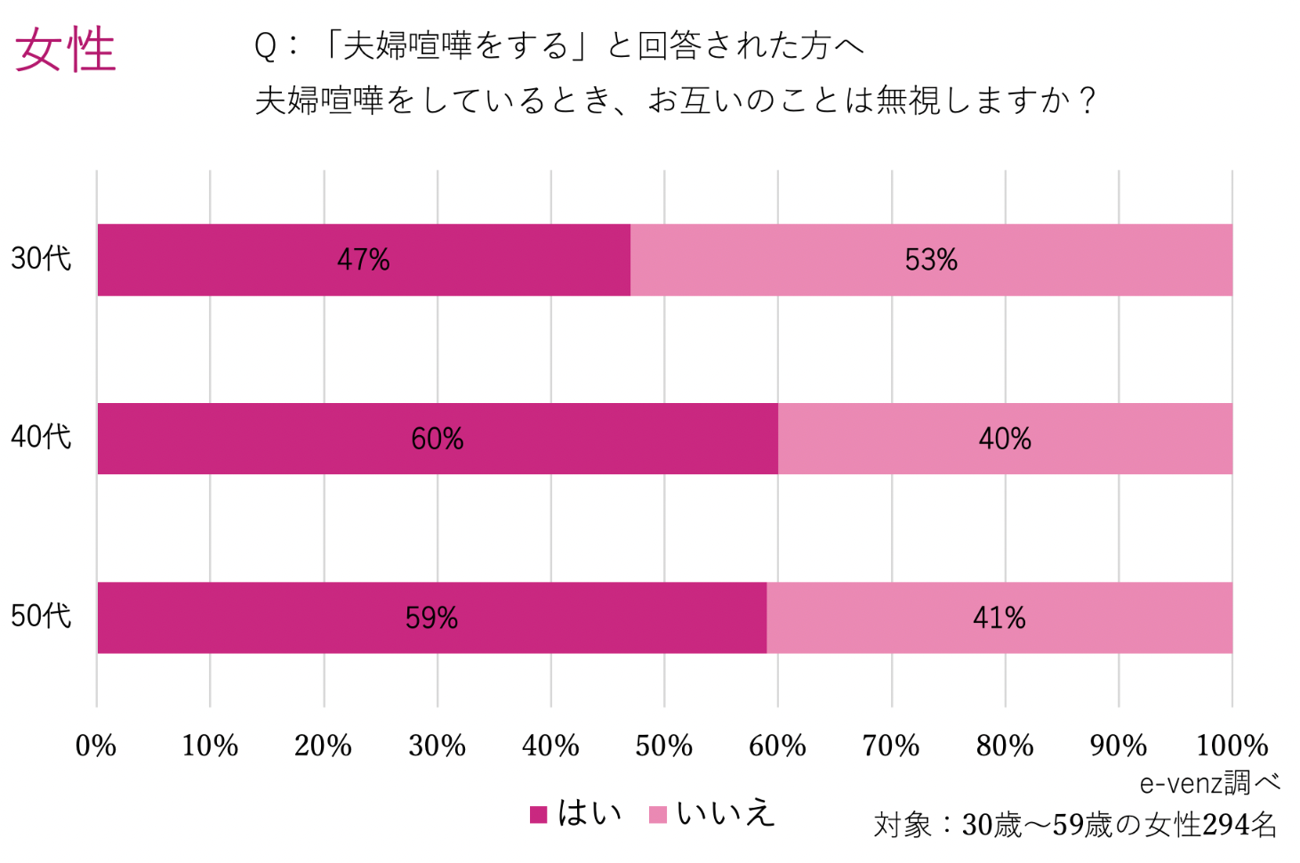 「夫婦喧嘩をする」と回答した方に、お互い無視するか調査してみました。