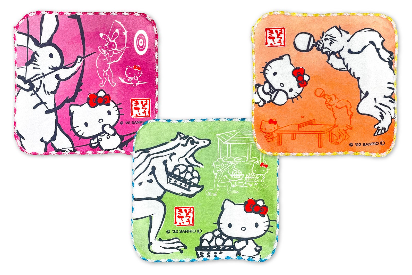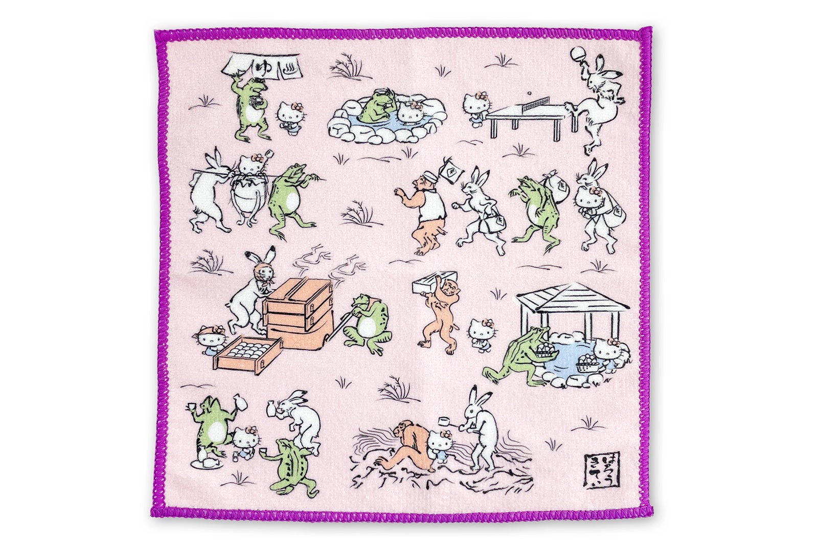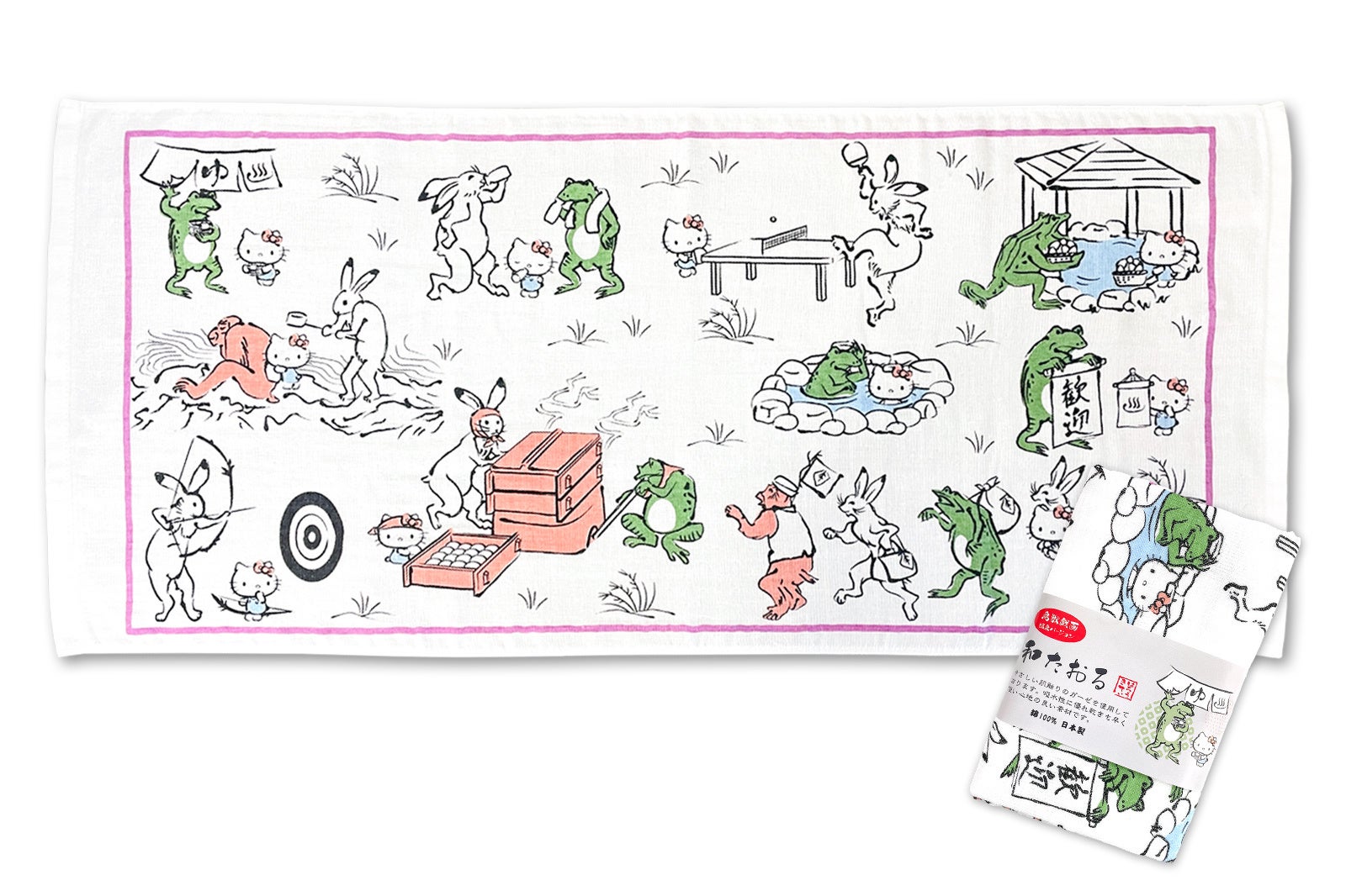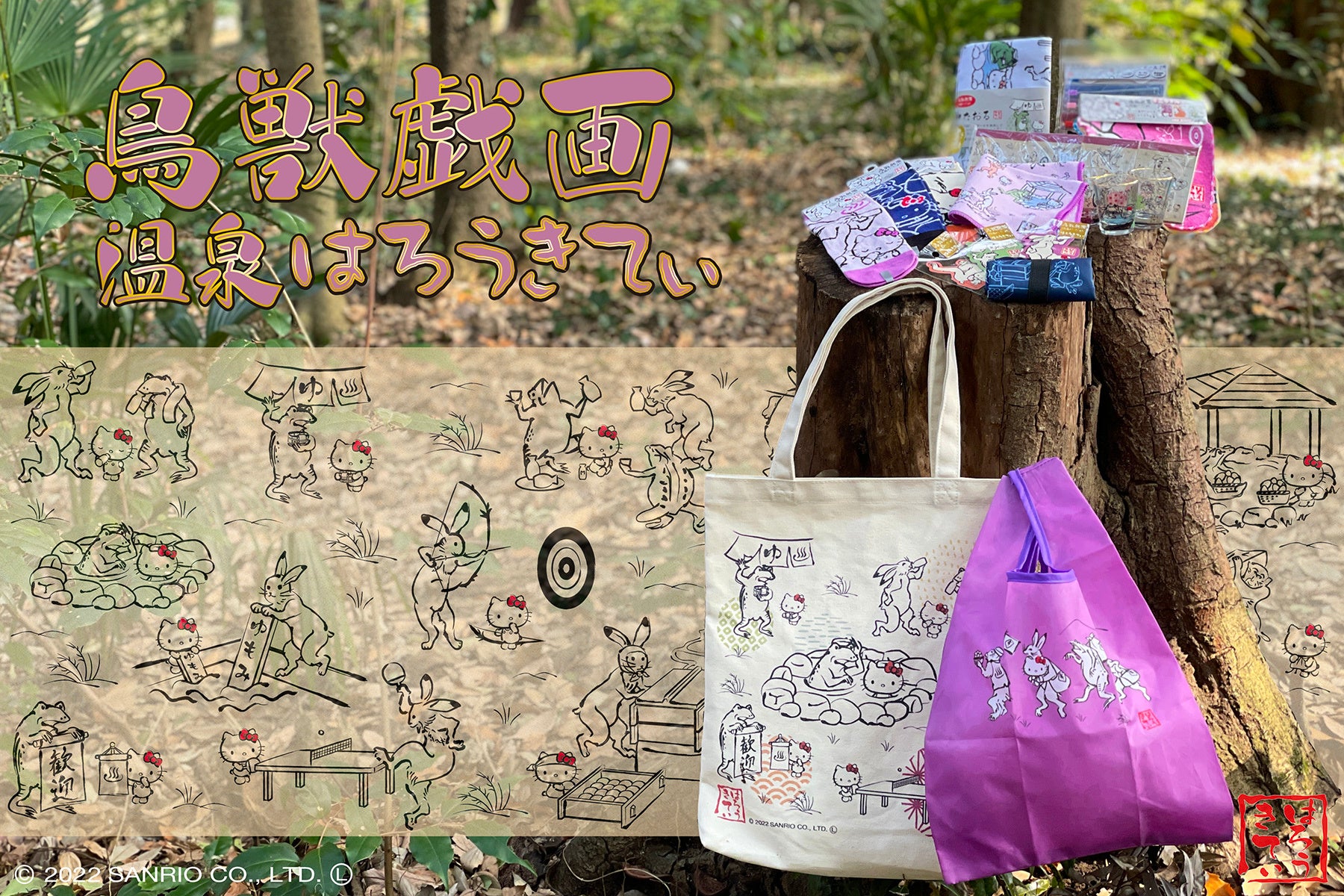 墨絵のような味わい深いタッチに馴染んだハローキティが、動物たちと日本の温泉地を楽しむ「ハローキティ×鳥獣戯画」コラボシリーズ