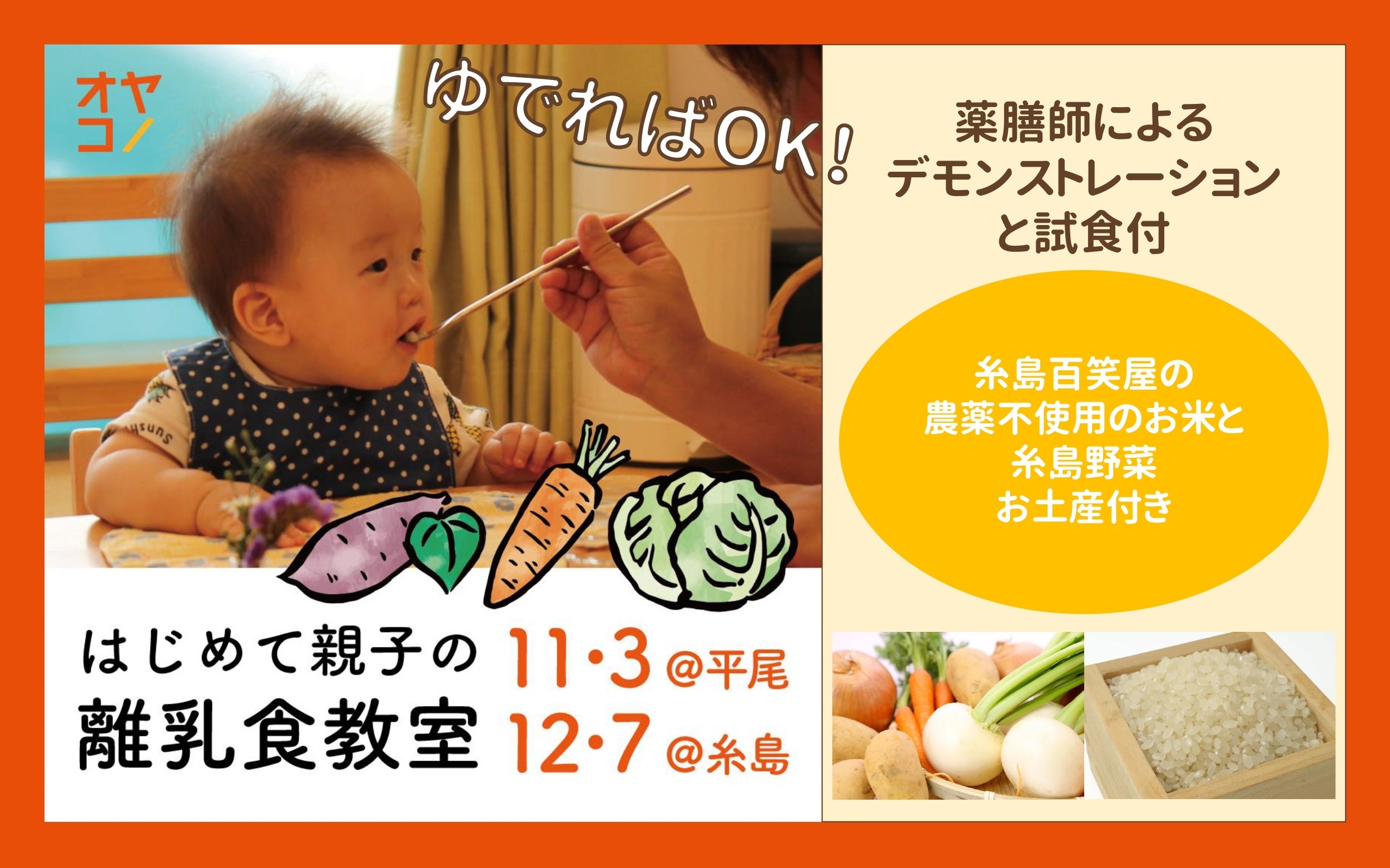 3歳までの親子の食に特化したオヤコノが「ゆでればOK!」の離乳食教室を福岡糸島・平尾にて開催します!