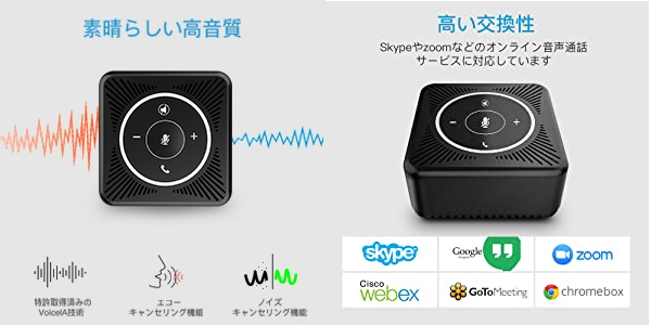また、デバイス、OS(PC、Mac、iOS、Android)を問わずに、高互換性を兼ねたスピーカーフォンです。様々な通話アプリ対応:eMeet M0スピーカーフォンは、Skypeやzoomなどのオンライン音声通話サービスに対応しています。