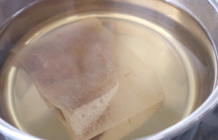 1.水またはお湯を入れた鍋の中にだしパックを入れます。