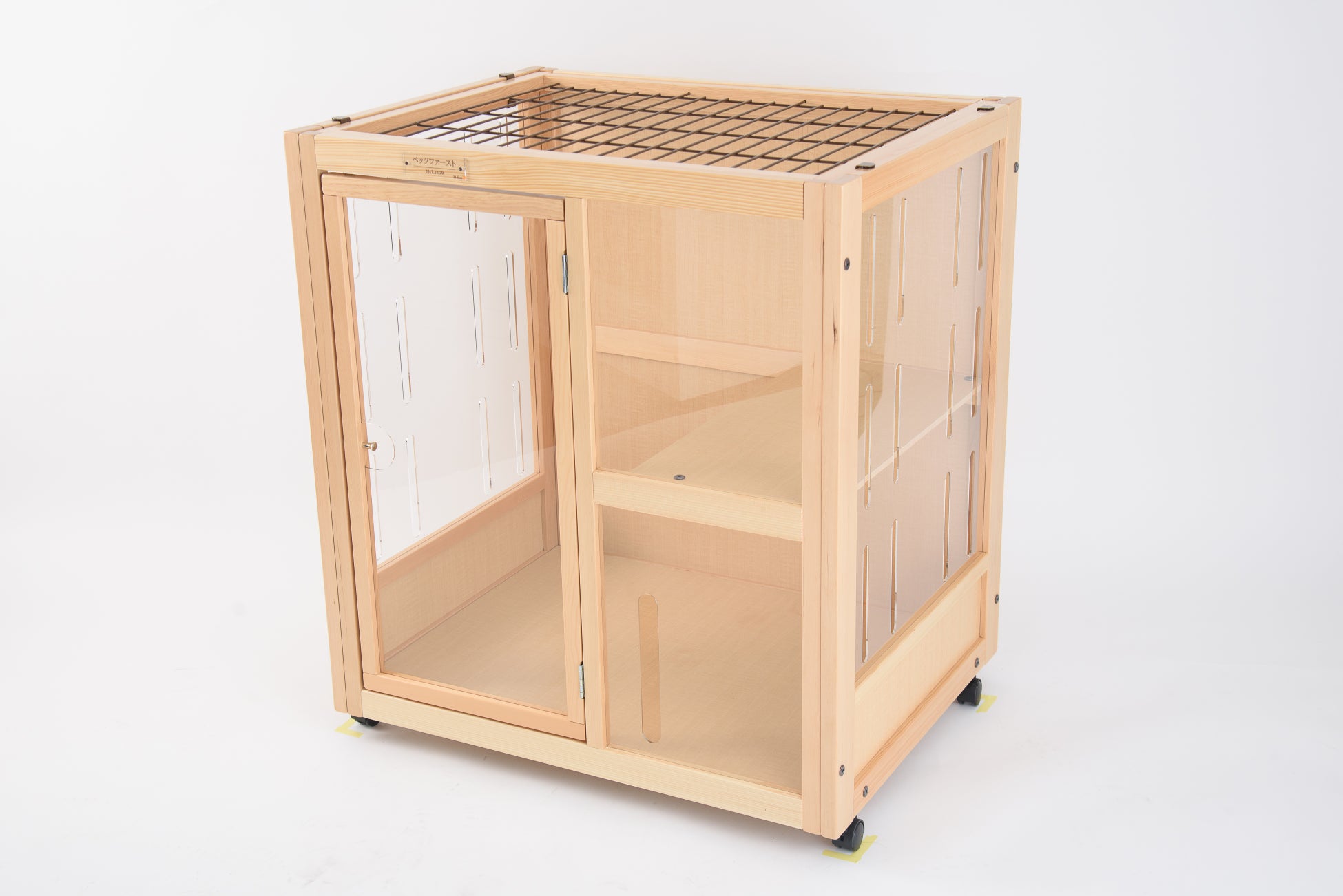 そして、そのベビーベッド製造で培った技術と安全性へのこだわりを⽣かし、⼦供と同じく家族の宝であるペットに対して温かみのある家具、サークルやケージの製造も行っています。