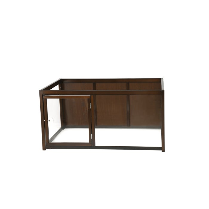 側面は風通しのいいメッシュタイプと開放感のあるアクリルタイプの2タイプをお選びいただけます。特に、アクリルタイプならではの透明感は、よりシンプルなデザインでインテリアにも馴染みやすいと好評を頂いております。サークル内で過ごすペットの様子も見やすく、ペットの貴重な子犬期の写真を綺麗に残すことができます。