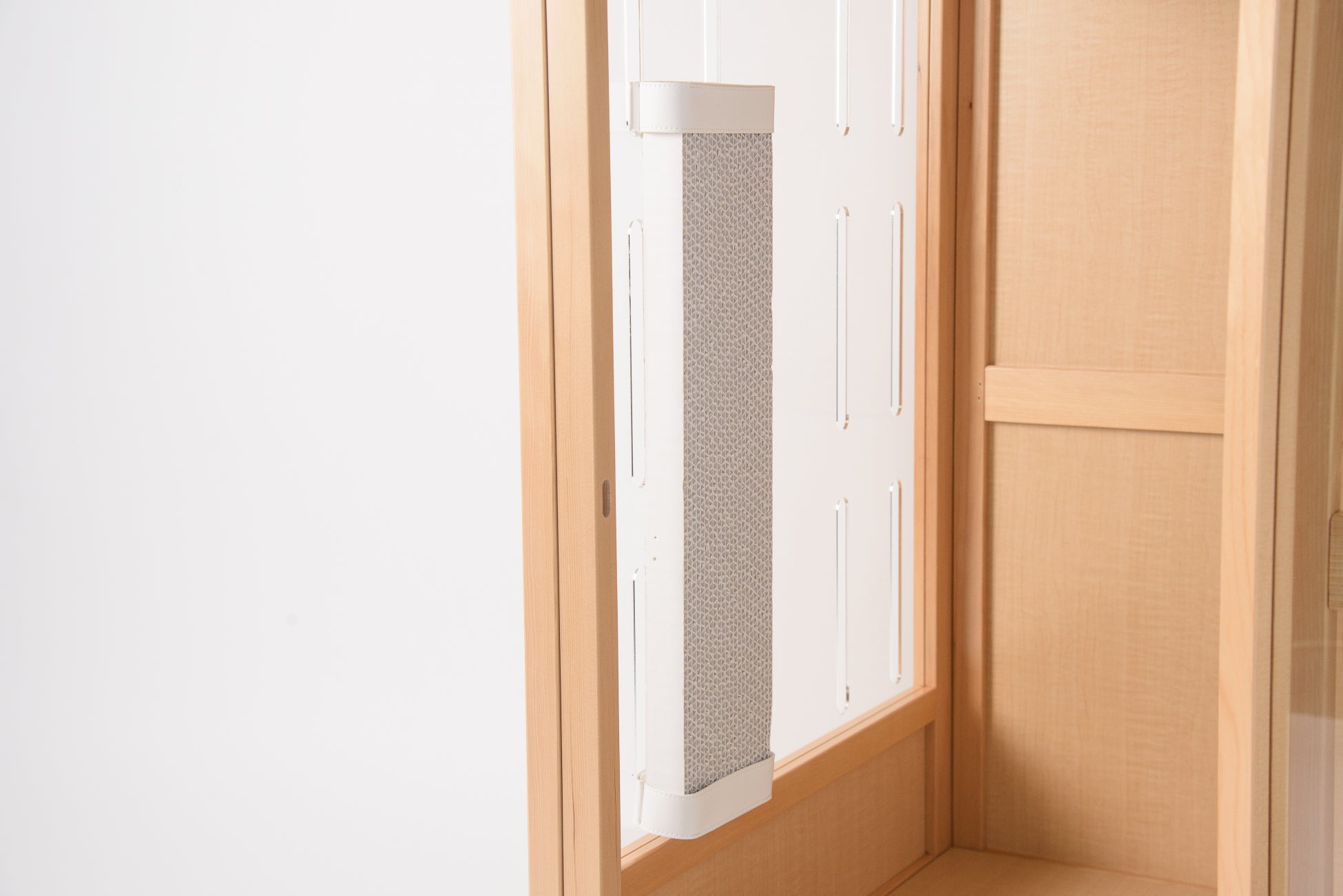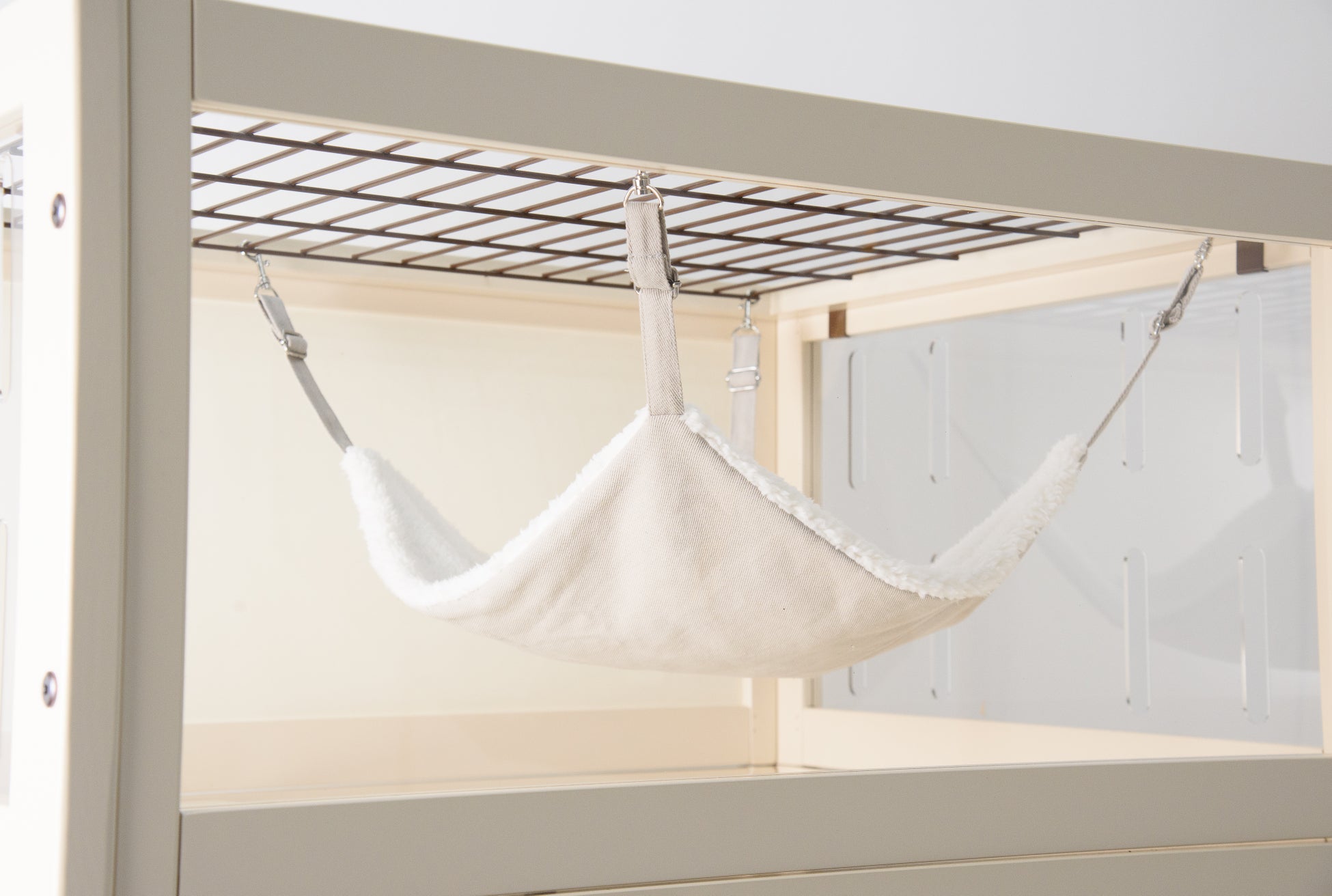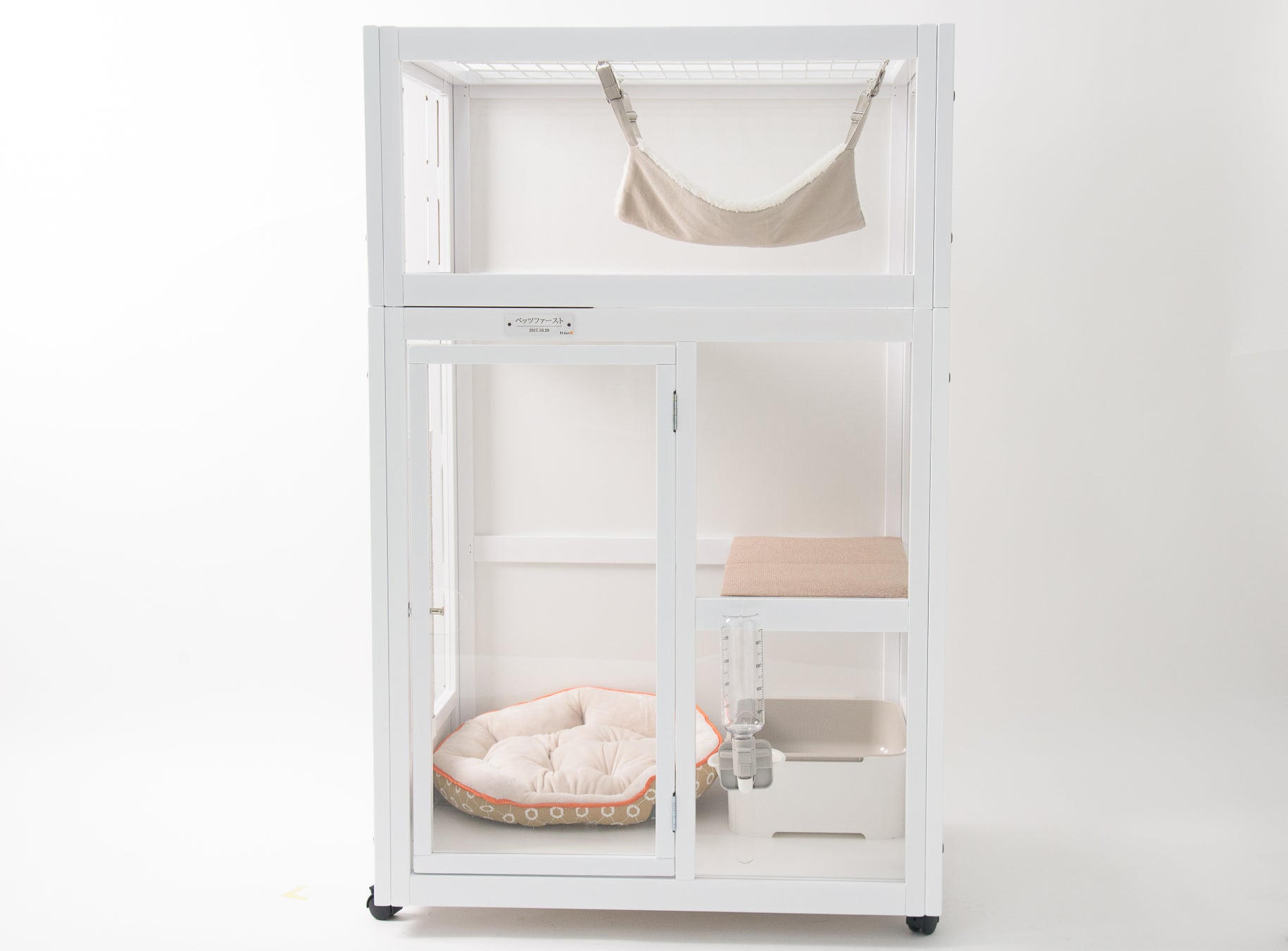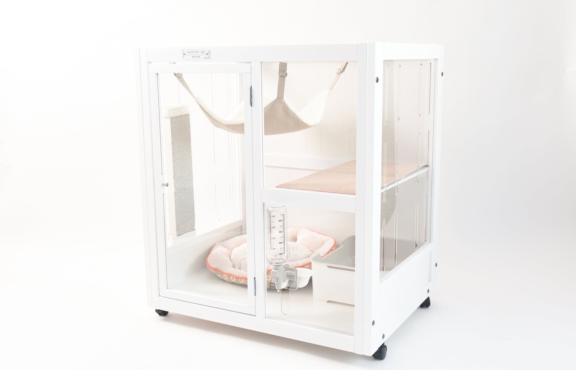 ネコちゃんがくつろぐことのできるハンモックやネコちゃんの生活に欠かすことのできない爪とぎ、給水器も取り付け可能です。付属品につきましてもペッツファーストオンラインストアで販売予定となっております。
