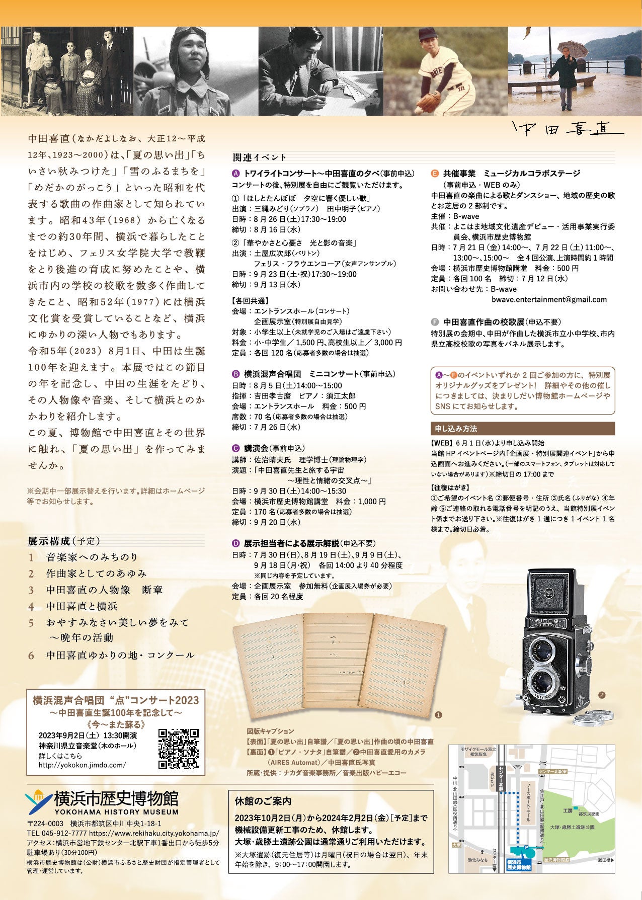 特別展「生誕百年 中田喜直展」開催・関連イベントのお知らせ【横浜市歴史博物館】