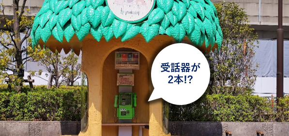 ・受話器が2つあり、3者同時通話が可能な公衆電話。記念事業として、数量限定で特別に製作されたものの1台。