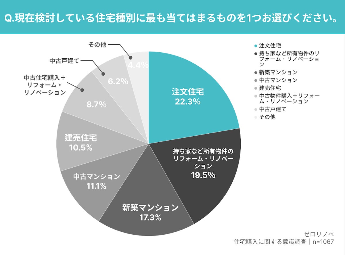 はじめに、回答者が検討している住宅種別について質問したところ、次のような結果になりました。