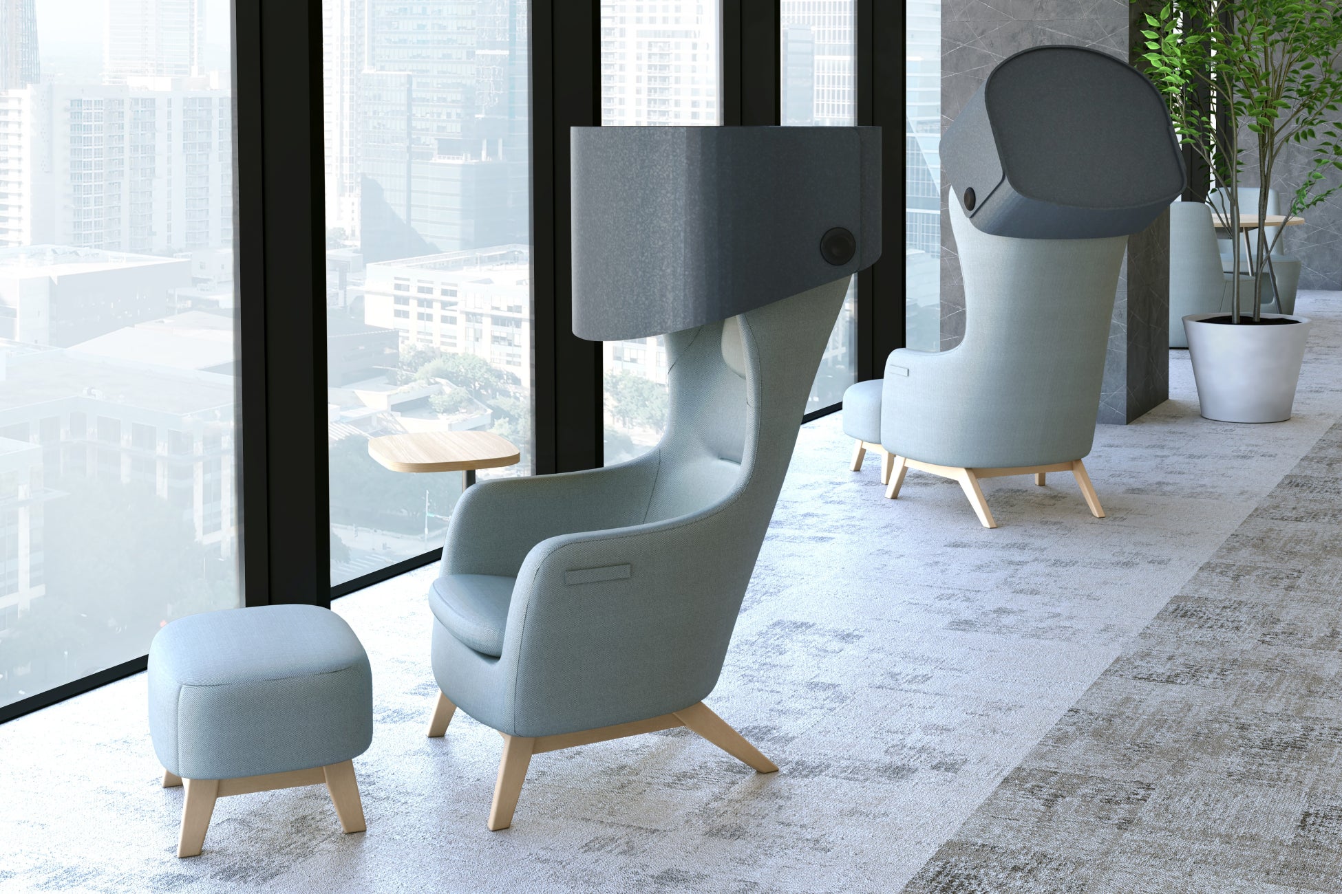 「Office Nap™」は、オフィスでの快適な仮眠をサポートするファニチャーシリーズです。チェアの後傾角度は深い眠りに落ちるのを防ぎ、NAP(仮眠)に最適な110度。顔周りを覆うことで適度な暗さを実現させながら寝顔が見られることを防ぐシェードなど、快適な仮眠を実現させるアイテムをラインアップしました。
