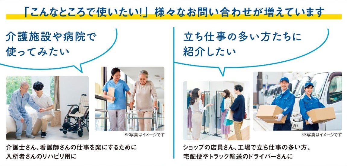 転倒防止をサポートするルームシューズや介護シューズ、スポーツ用途に特化したインソールとしての用途を想定しています。また今後は、快足インソールと同じ特徴を持つビーチサンダルなど、様々なシーンでご使用いただける商品の開発を進める予定です。