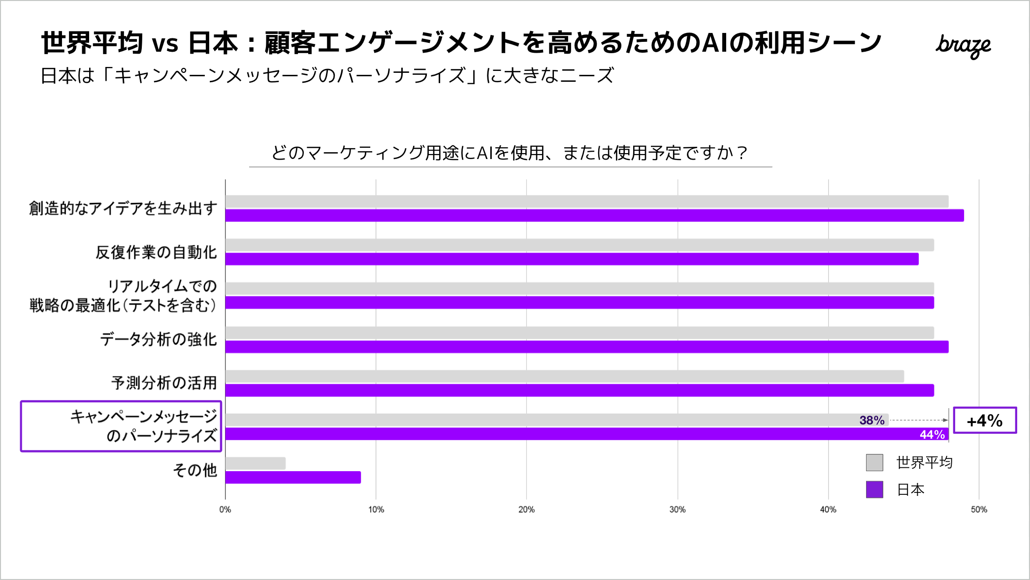 日本は世界に比べ、AI活用でパーソナライズされた体験を提供したいと考えている