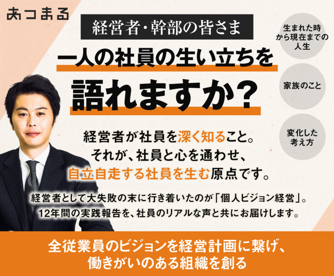 株式会社あつまるが12年間実践し続けてきた「個人ビジョン経営」の実践報告セミナーを開催いたします。