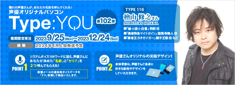 声優オリジナルパソコン【Type:YOU】第102弾 商品ラインナップについて