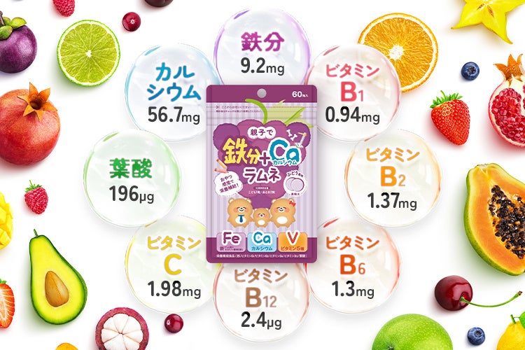 親子で一緒に鉄分や栄養素が摂れる栄養機能食品「しっかり鉄分ラムネ」