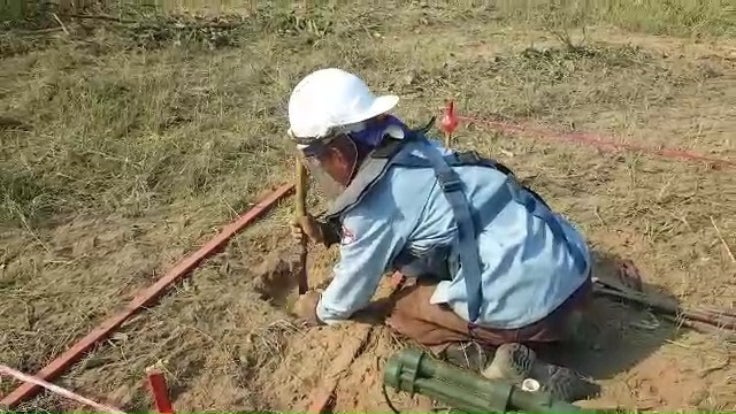 これまで様々な重機型の地雷除去装置が導入されましたが、重機が進入できない山林や丘陵地、市街地等では今でも手作業での除去作業を余儀なくされ、常に危険と隣り合わせの活動が続けられています。